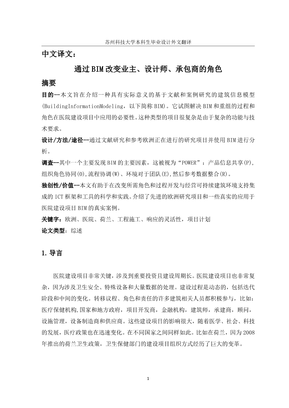通过BIM改变业主、设计师、承包商的角色外文翻译资料