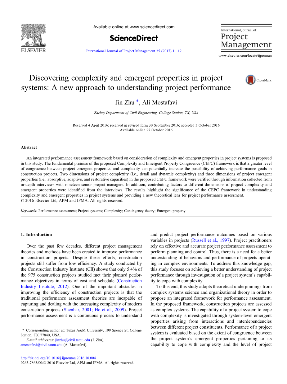发现项目系统的复杂性和应急属性:理解项目业绩的 新方法外文翻译资料