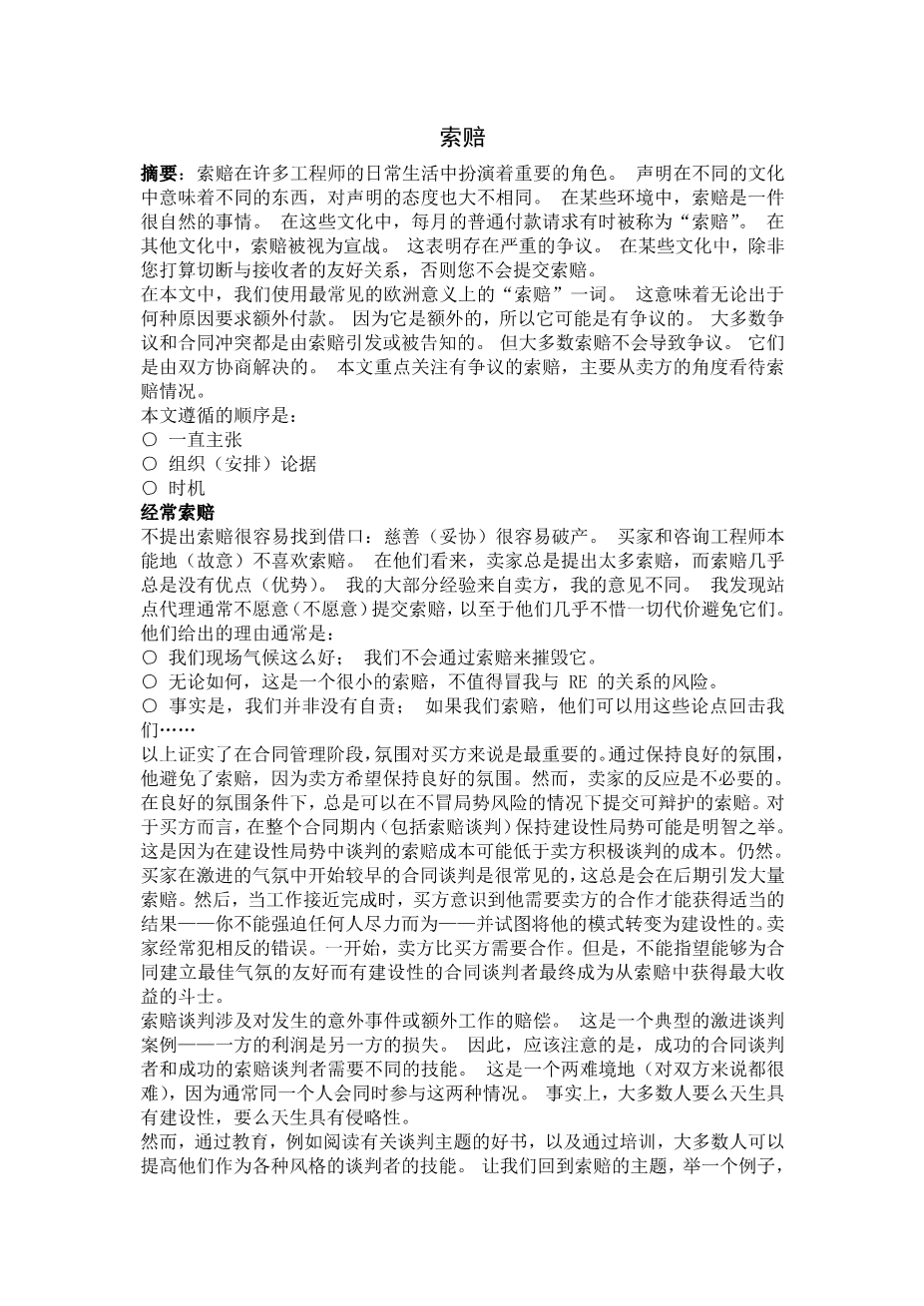 索赔外文翻译资料