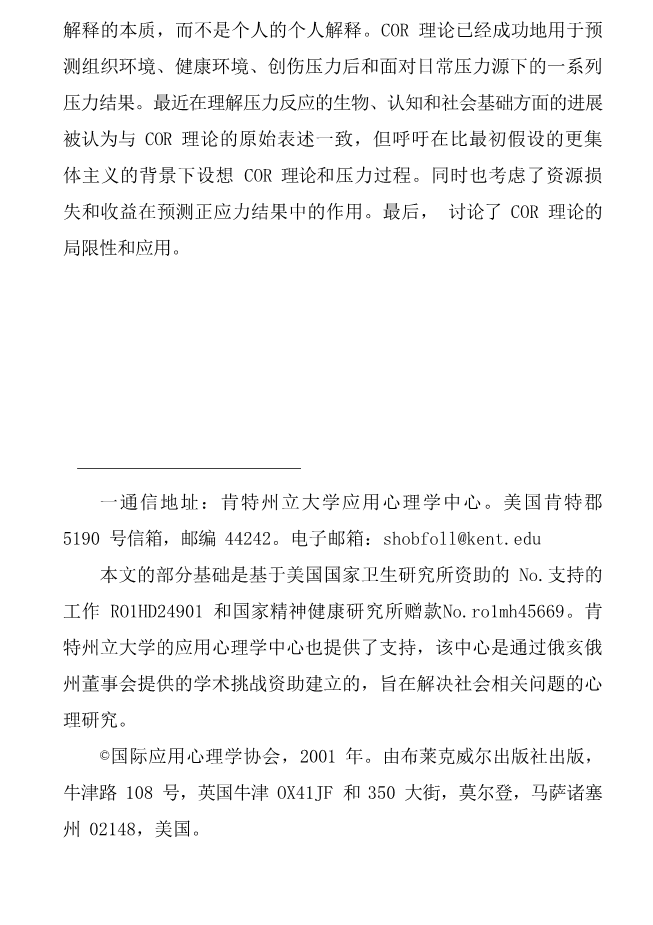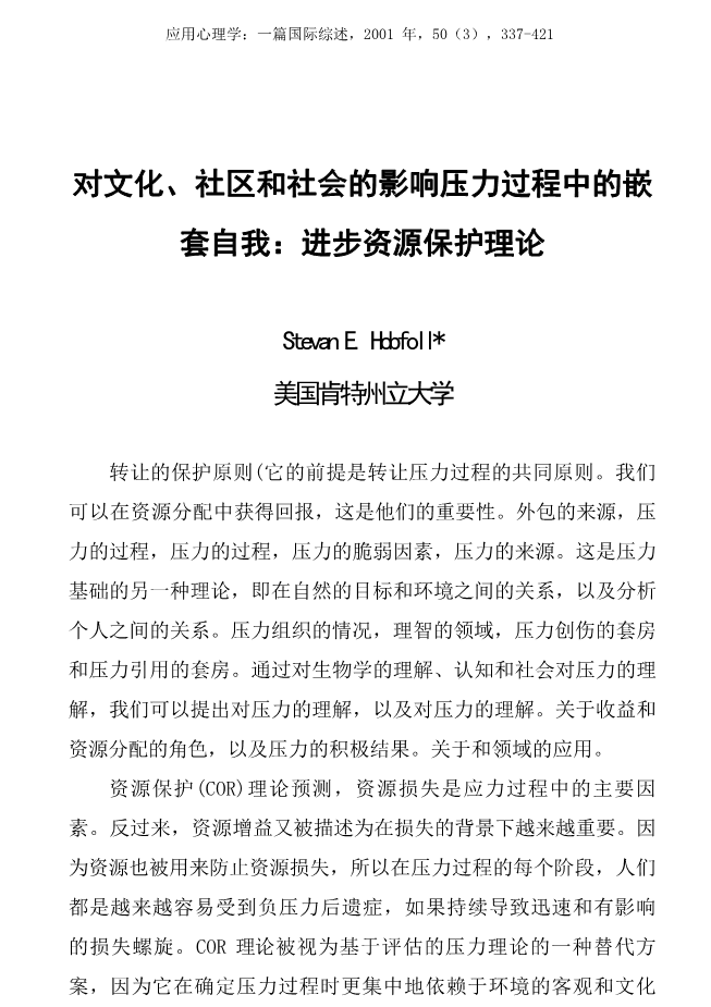 对文化、社区和社会的影响压力过程中的嵌套自我:进步资源保护理论外文翻译资料