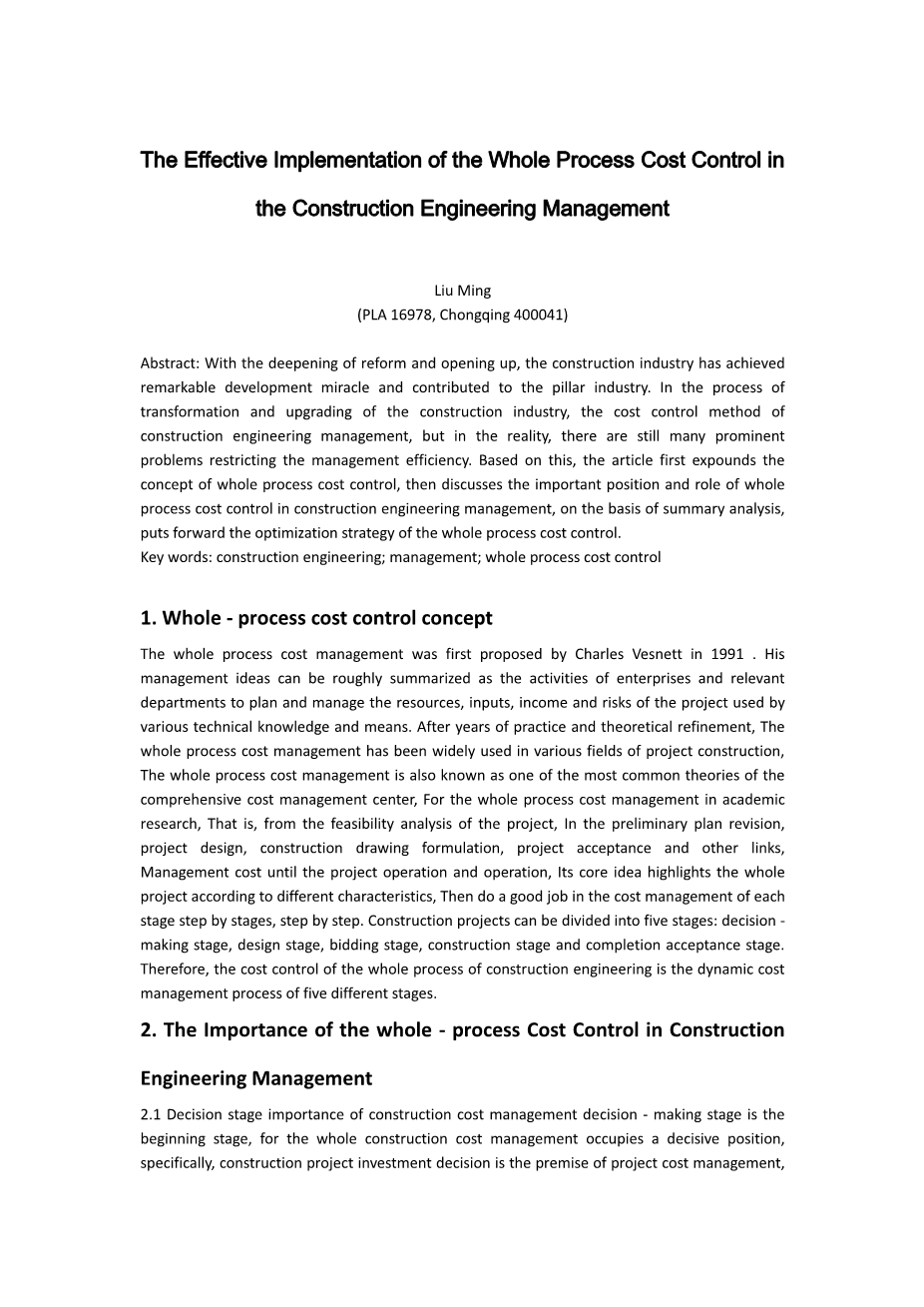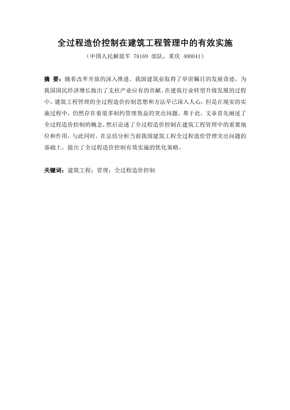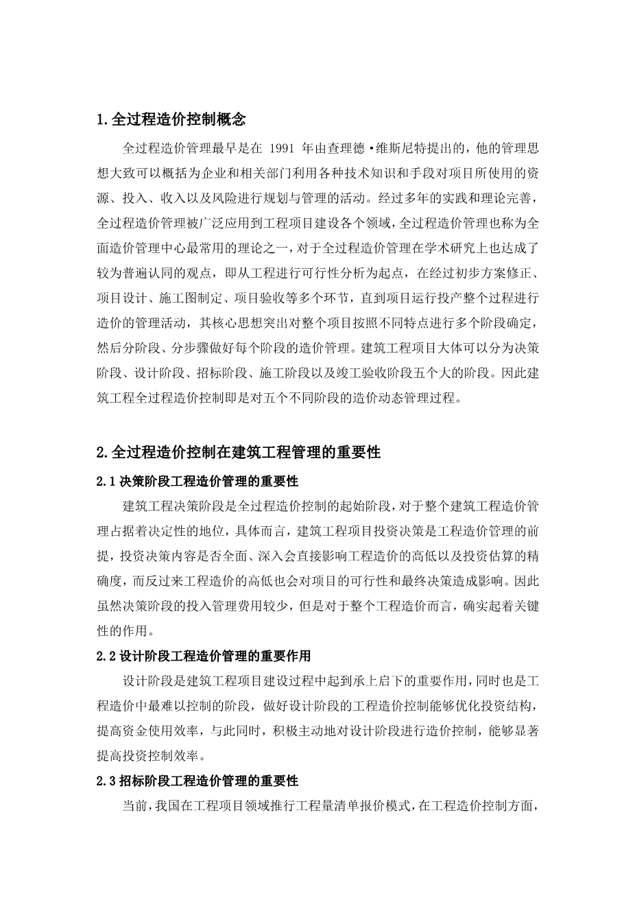 全过程造价控制在建筑工程管理中的有效实施外文翻译资料
