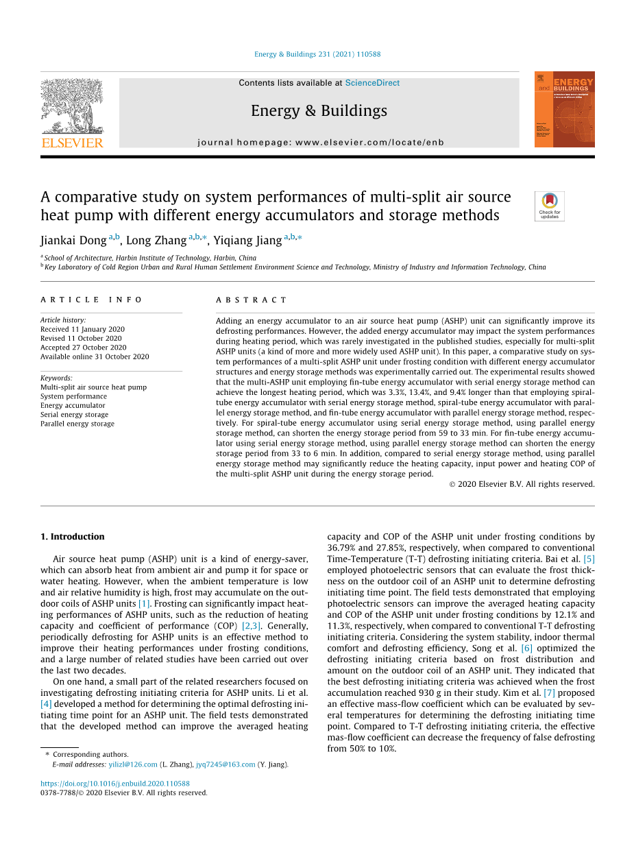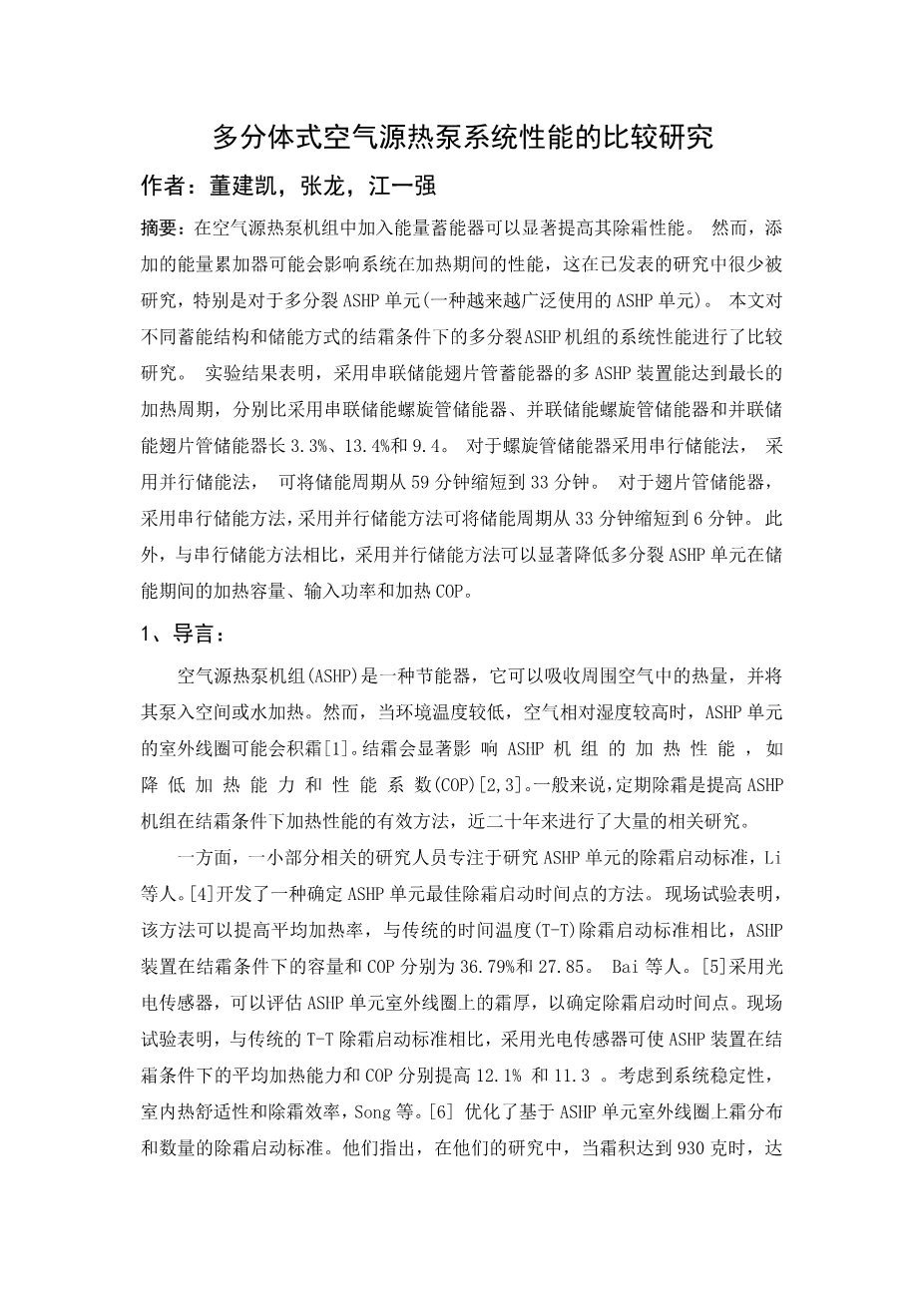 多分体式空气源热泵系统性能的比较研究外文翻译资料