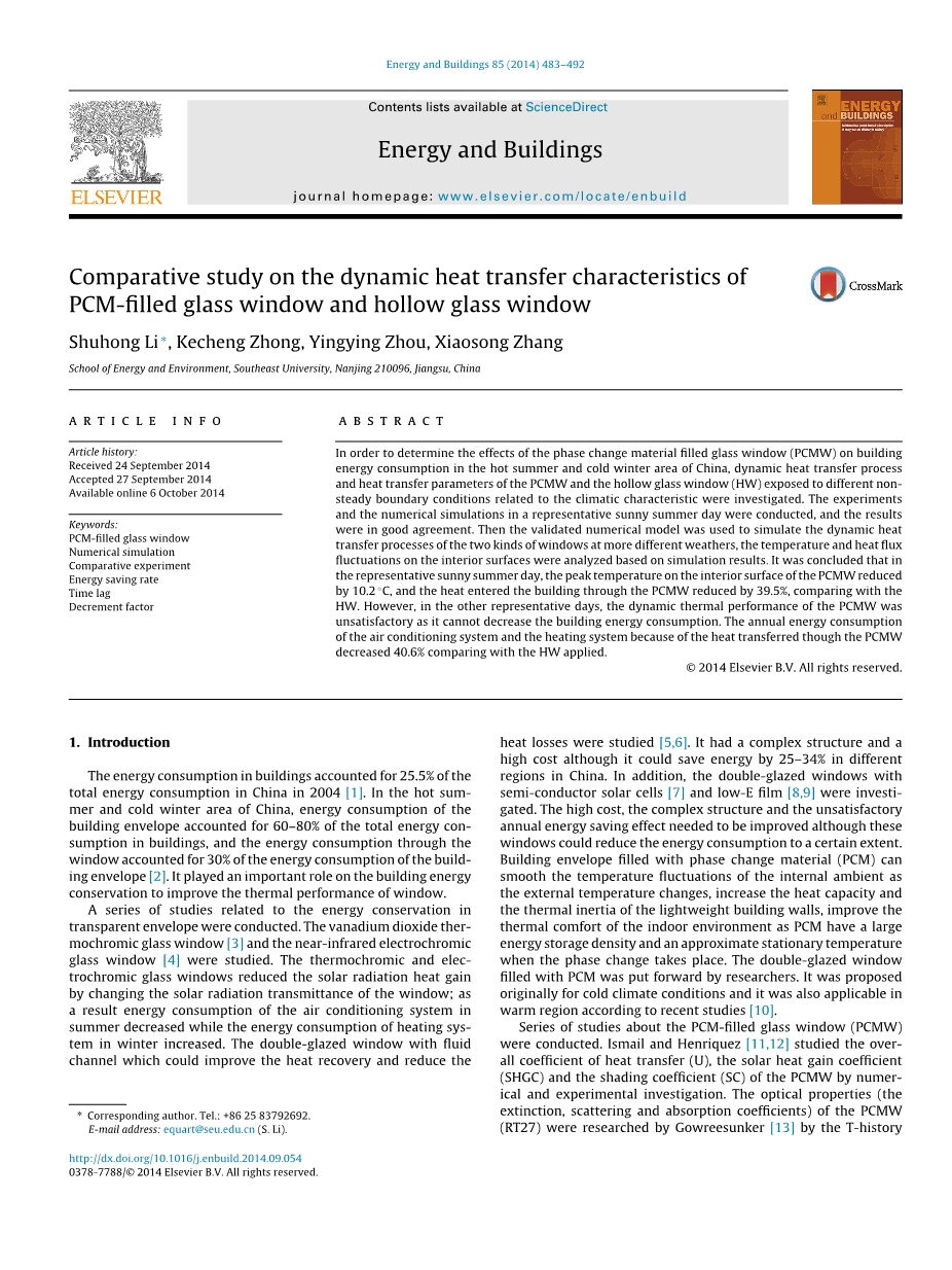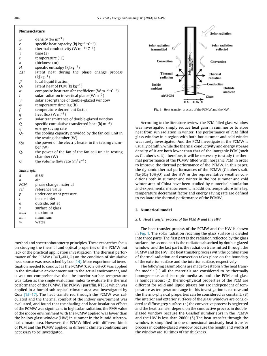 pcm填充玻璃窗与中空玻璃窗的动态传热特性对比研究外文翻译资料