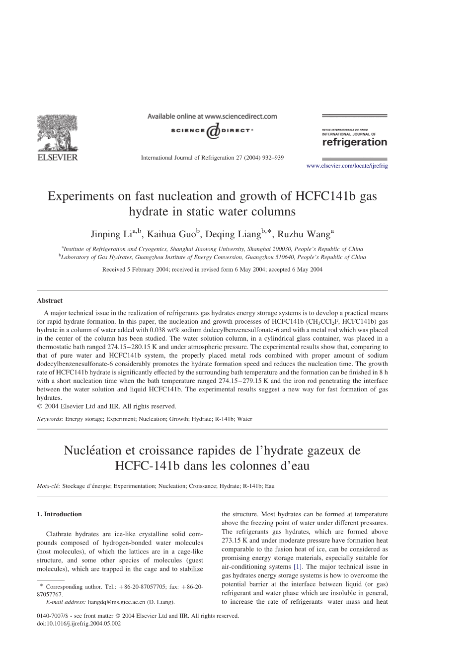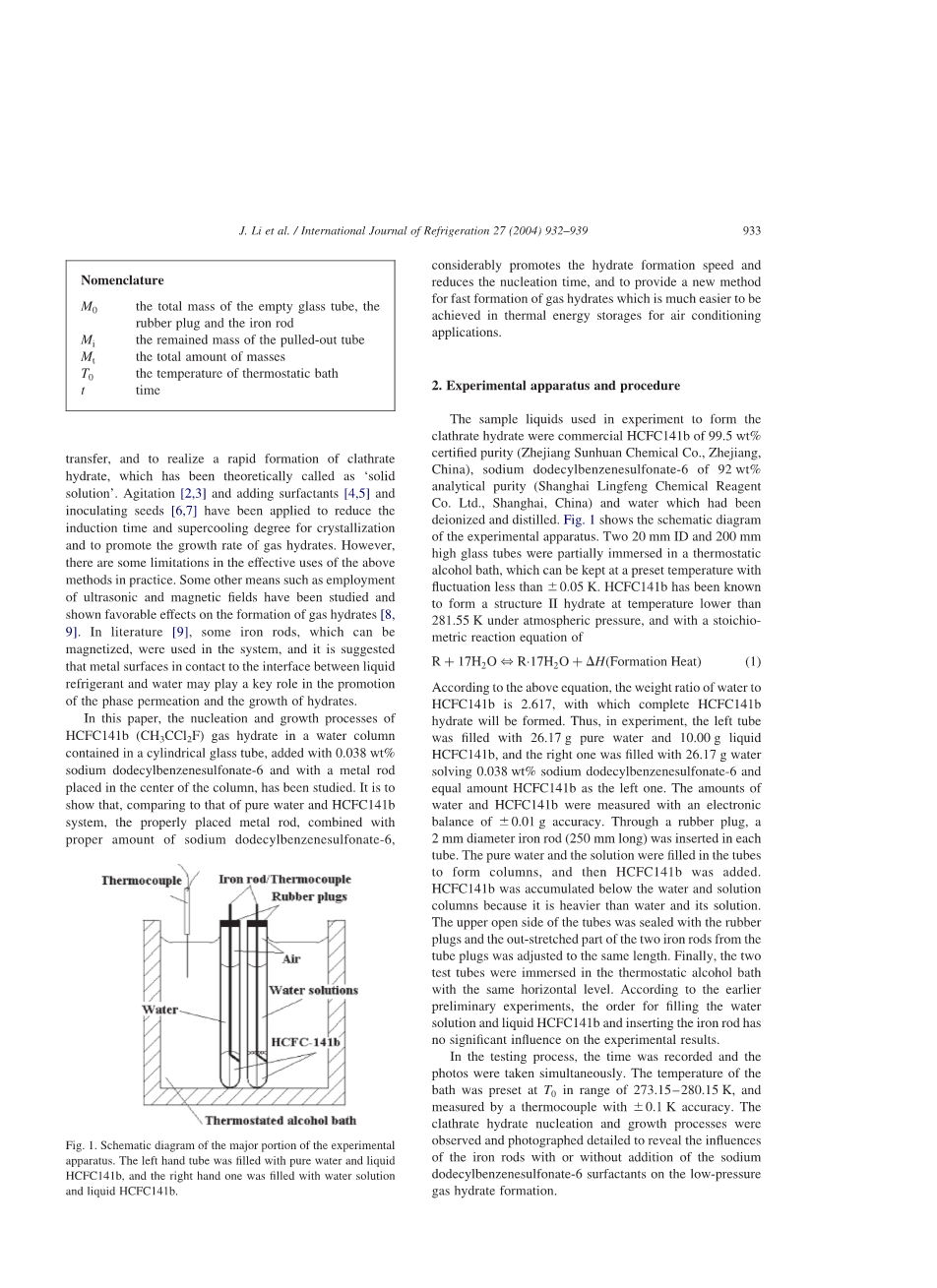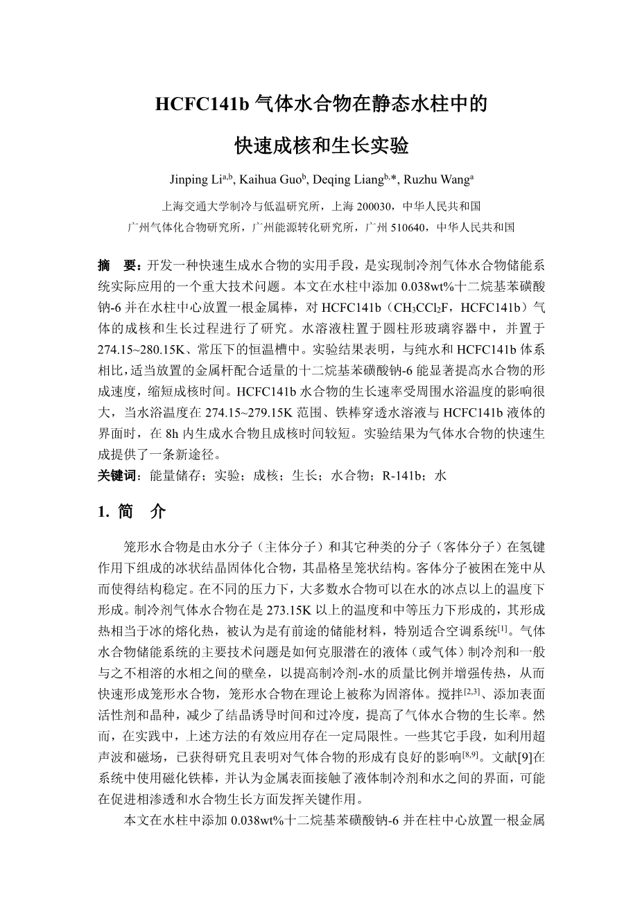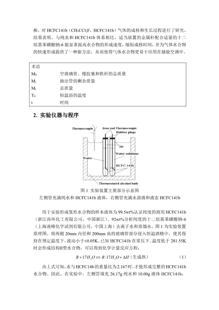 HCFC141b气体水合物在静态水柱中的 快速成核和生长实验外文翻译资料