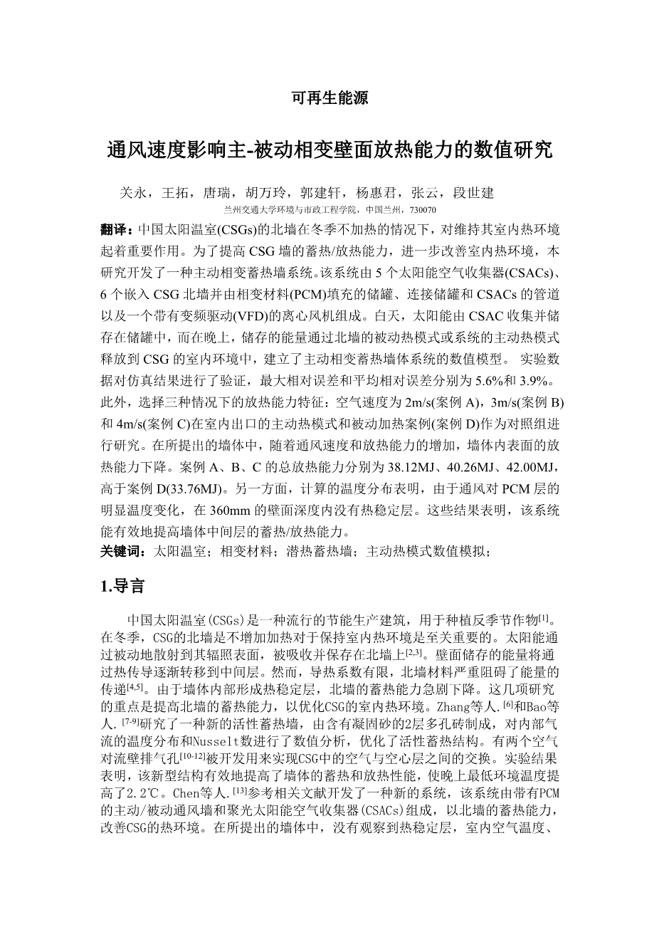 通风速度影响主-被动相变壁面放热能力的数值研究外文翻译资料