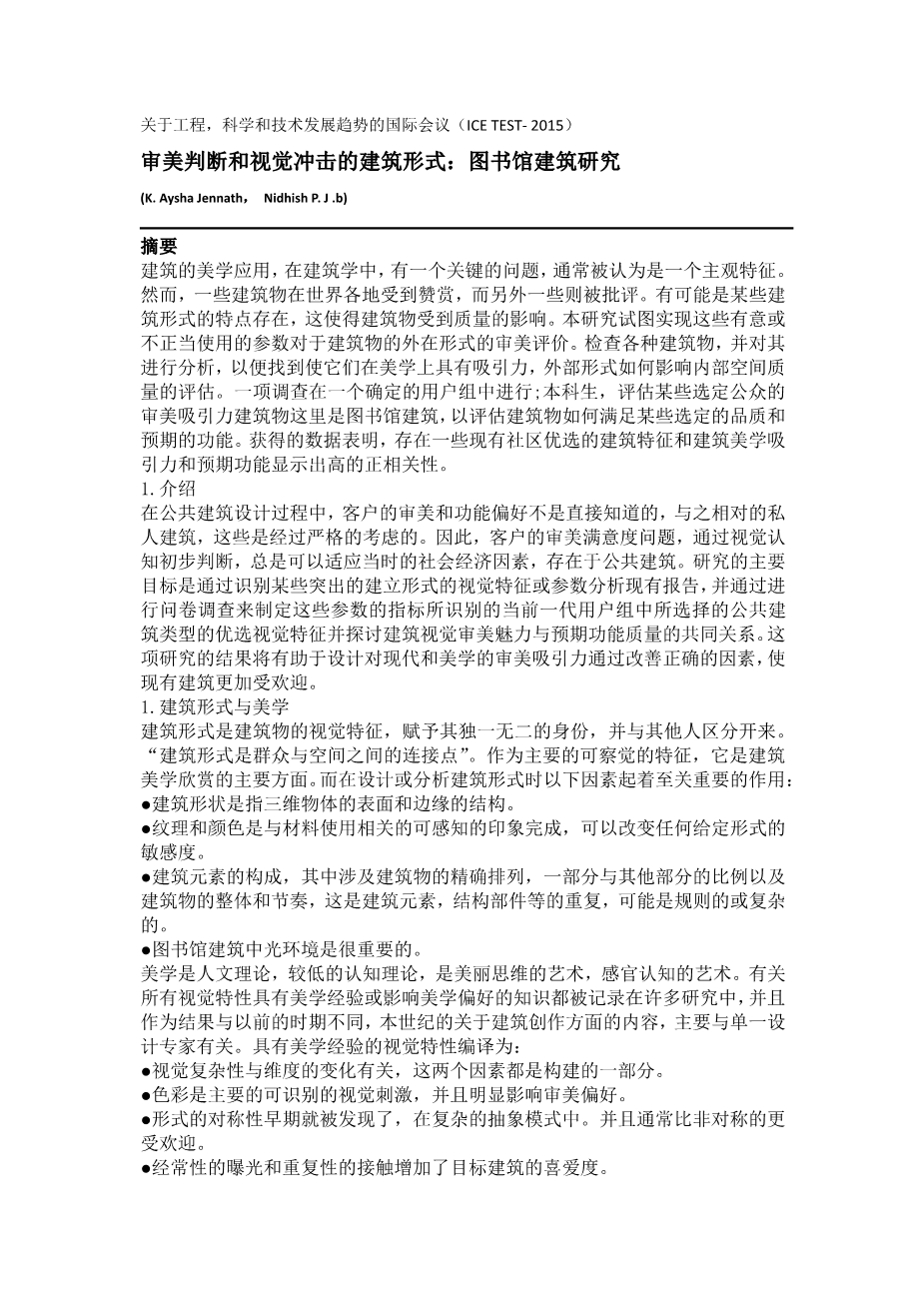 审美判断和视觉冲击的建筑形式:图书馆建筑研究外文翻译资料