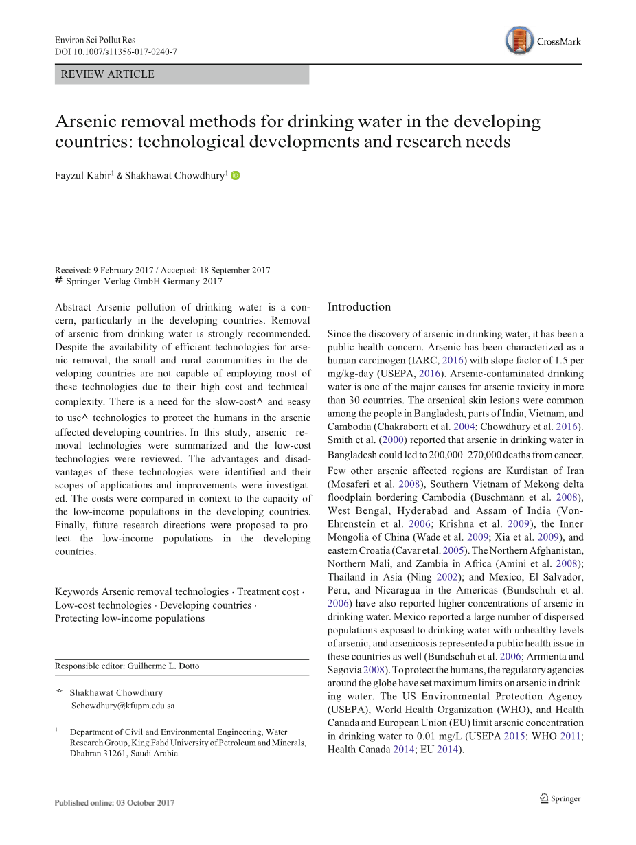 关键字:砷去除技术,处理成本,低成本技术,发展中国家,保护低收入人口
