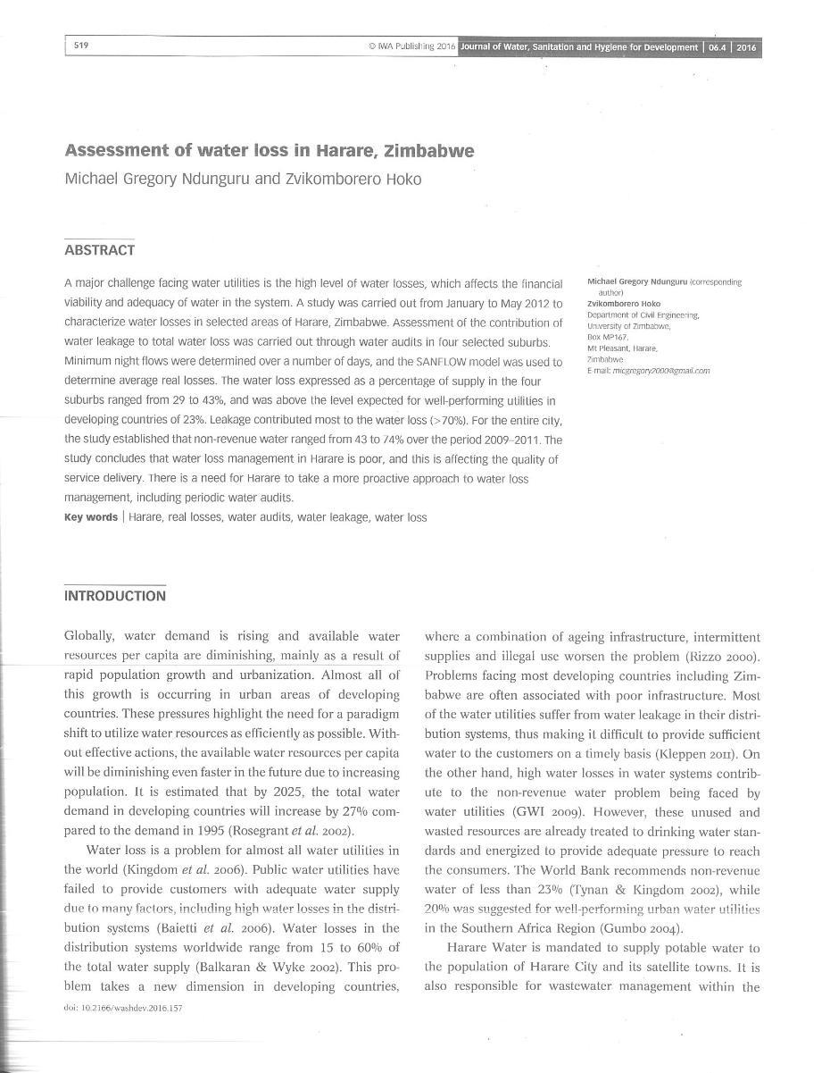 津巴布韦哈拉雷的水资源损失评估