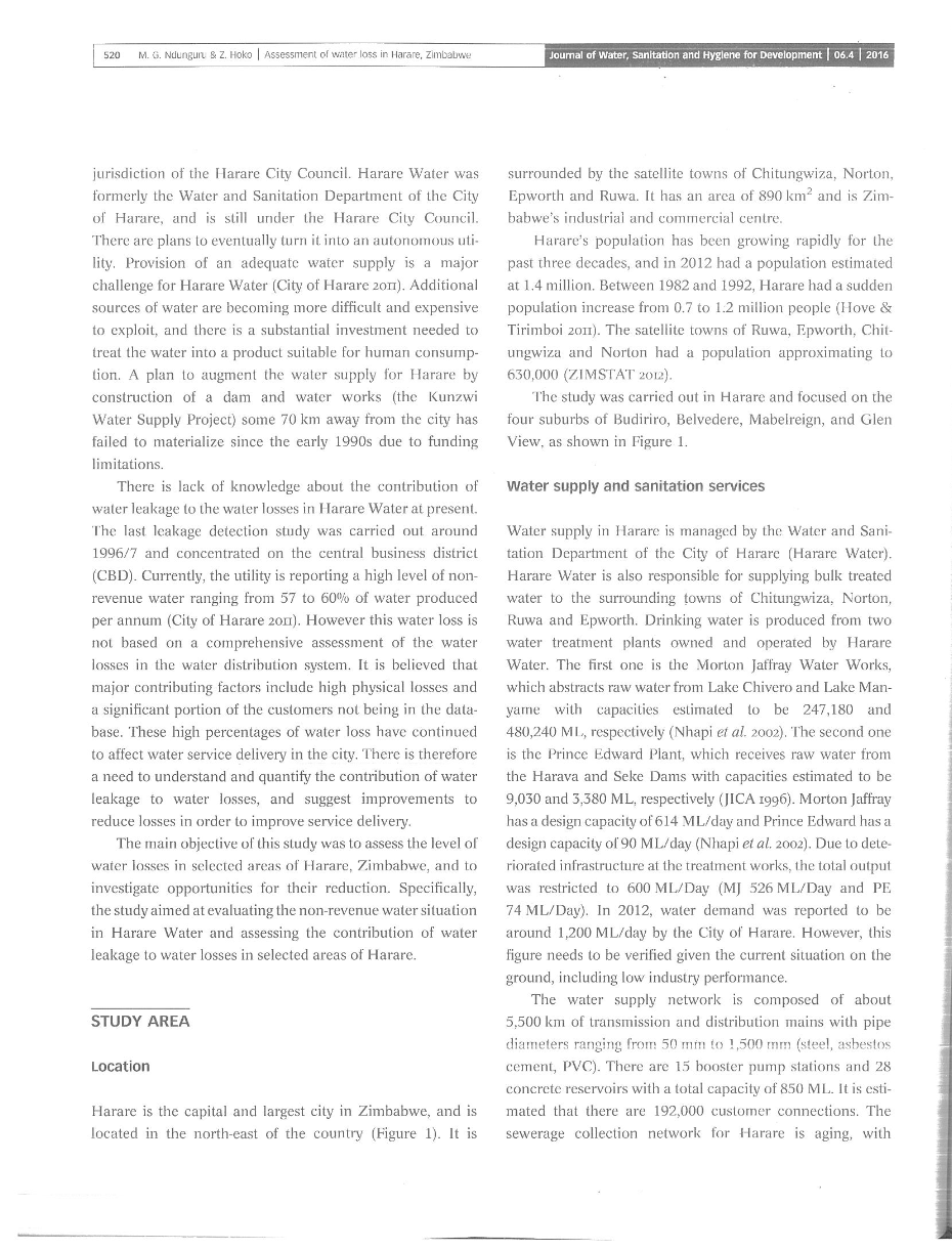 这项研究的主要目的是评估津巴布韦哈拉雷选定地区的失水水平,并调查减少失水的机会。具体地说,这项研究的目的是评价哈拉雷水的非收入水情况,并评估水泄漏对哈拉雷选定地区的水损失的影响。