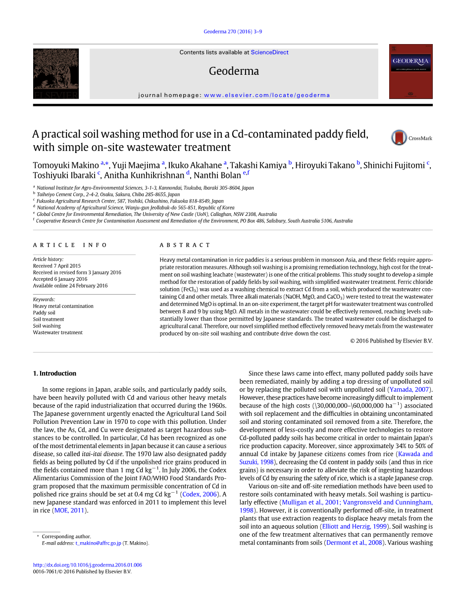对耕作层土壤采样点在五从实验场和处理水稻领域约1个月前和1个月的现场土壤清洗后。所有样品风干后过一2-mm-mesh筛前分析。土壤Cd含量为0.1 M盐酸消化由硝酸和高氯酸混合酸中提取,由牧野等人描述。