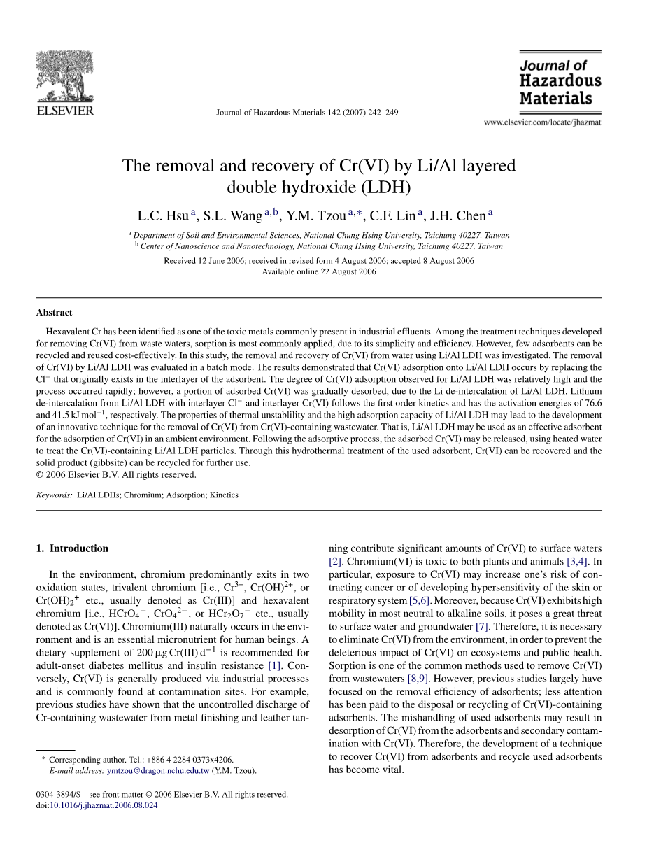 LDH(层状双金属氢氧化物)对六价铬的去除与回收外文翻译资料