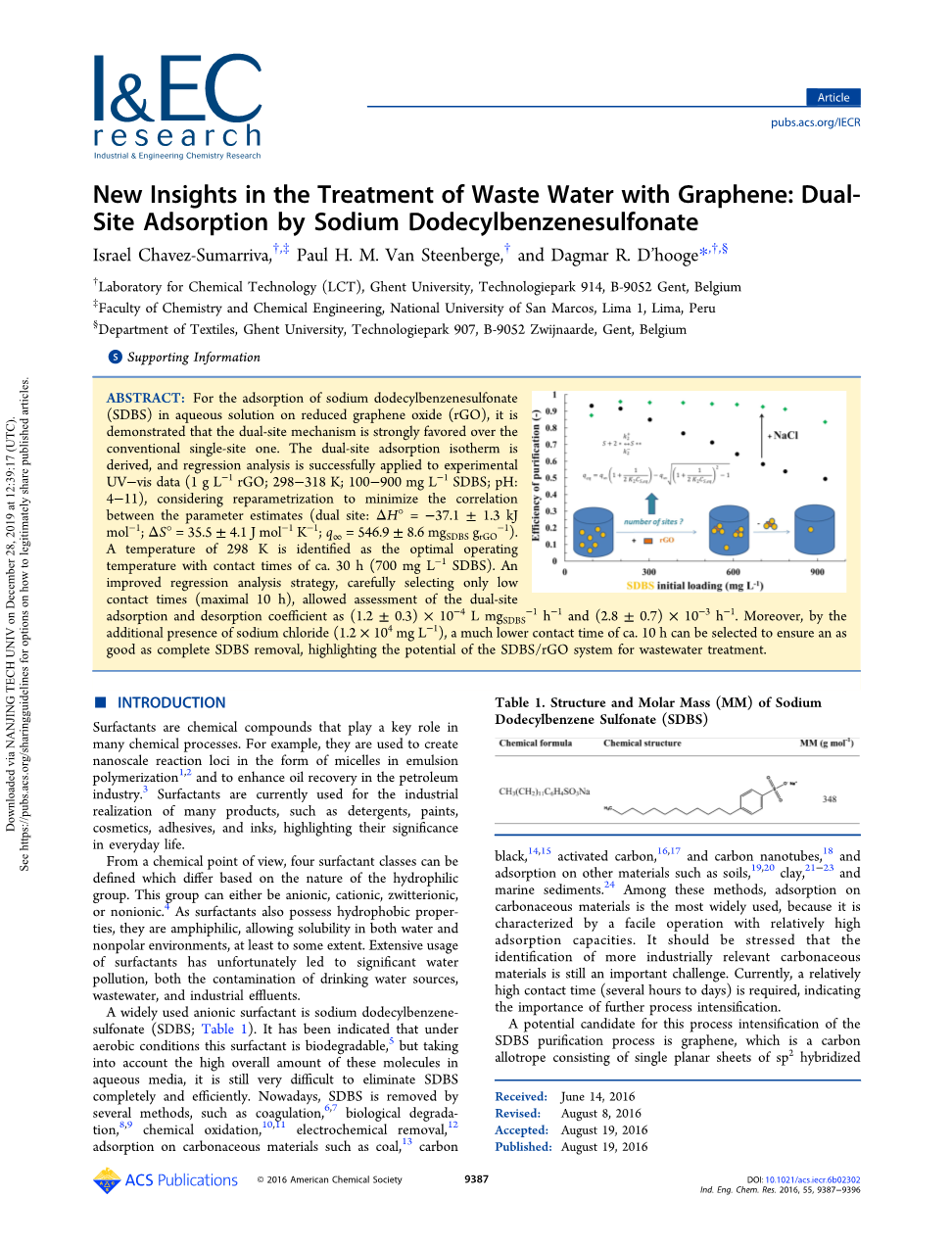 石墨烯处理废水的新见解:十二烷基苯磺酸钠双位点吸附外文翻译资料