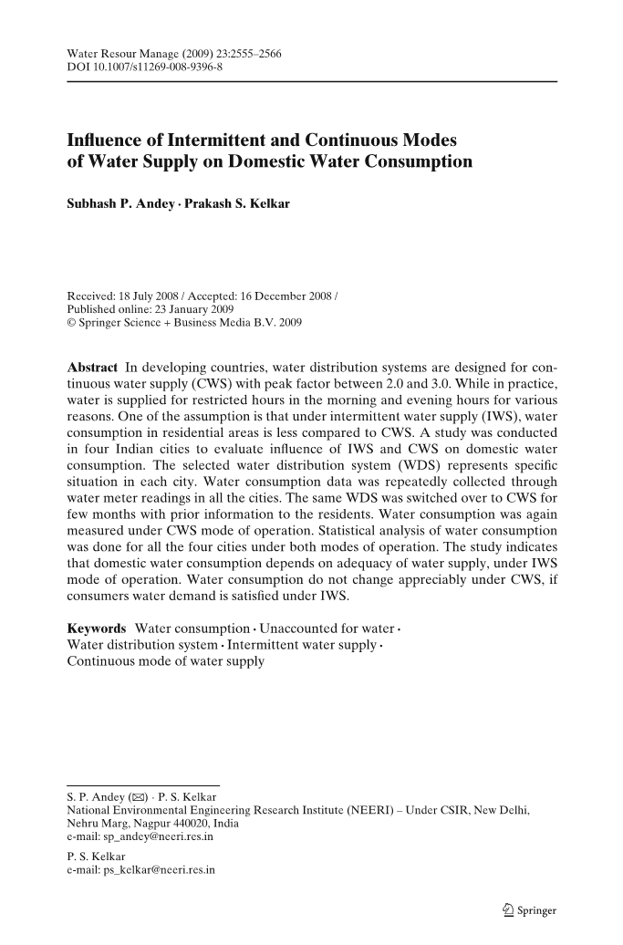 间歇和连续供水方式对生活用水的影响外文翻译资料