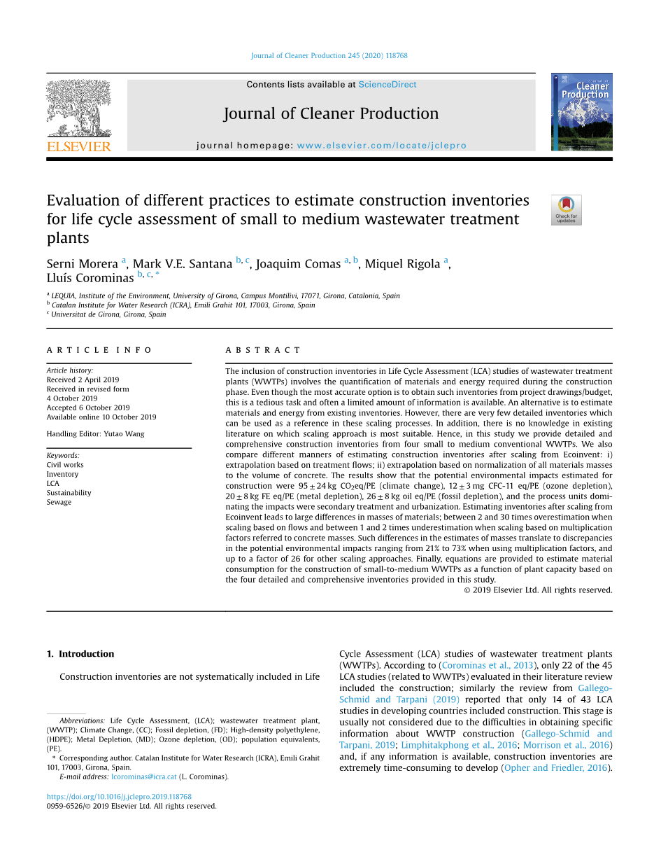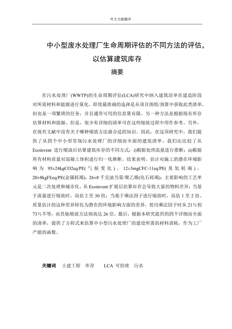 中小型废水处理厂生命周期评估的不同方法的评估,以估算建筑库存外文翻译资料