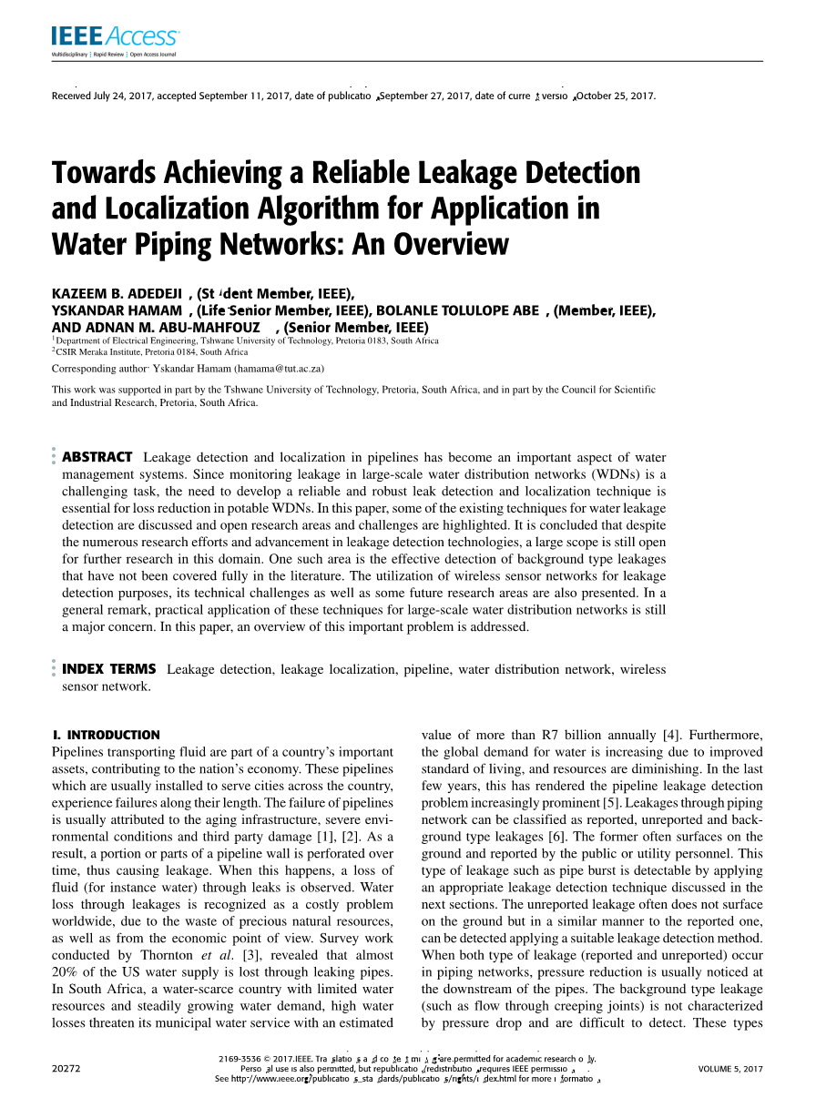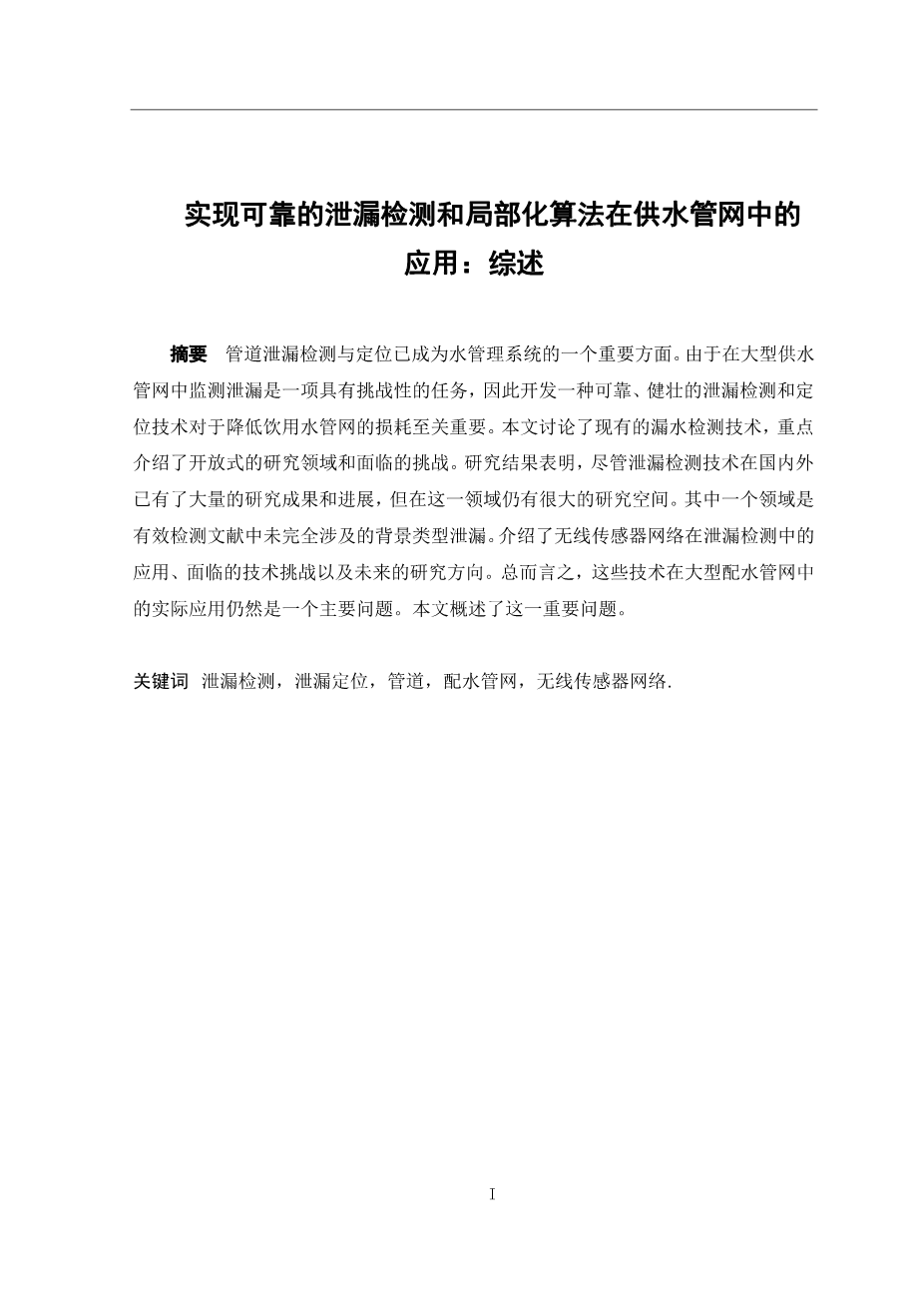 实现可靠的泄漏检测和局部化算法在供水管网中的应用:综述外文翻译资料