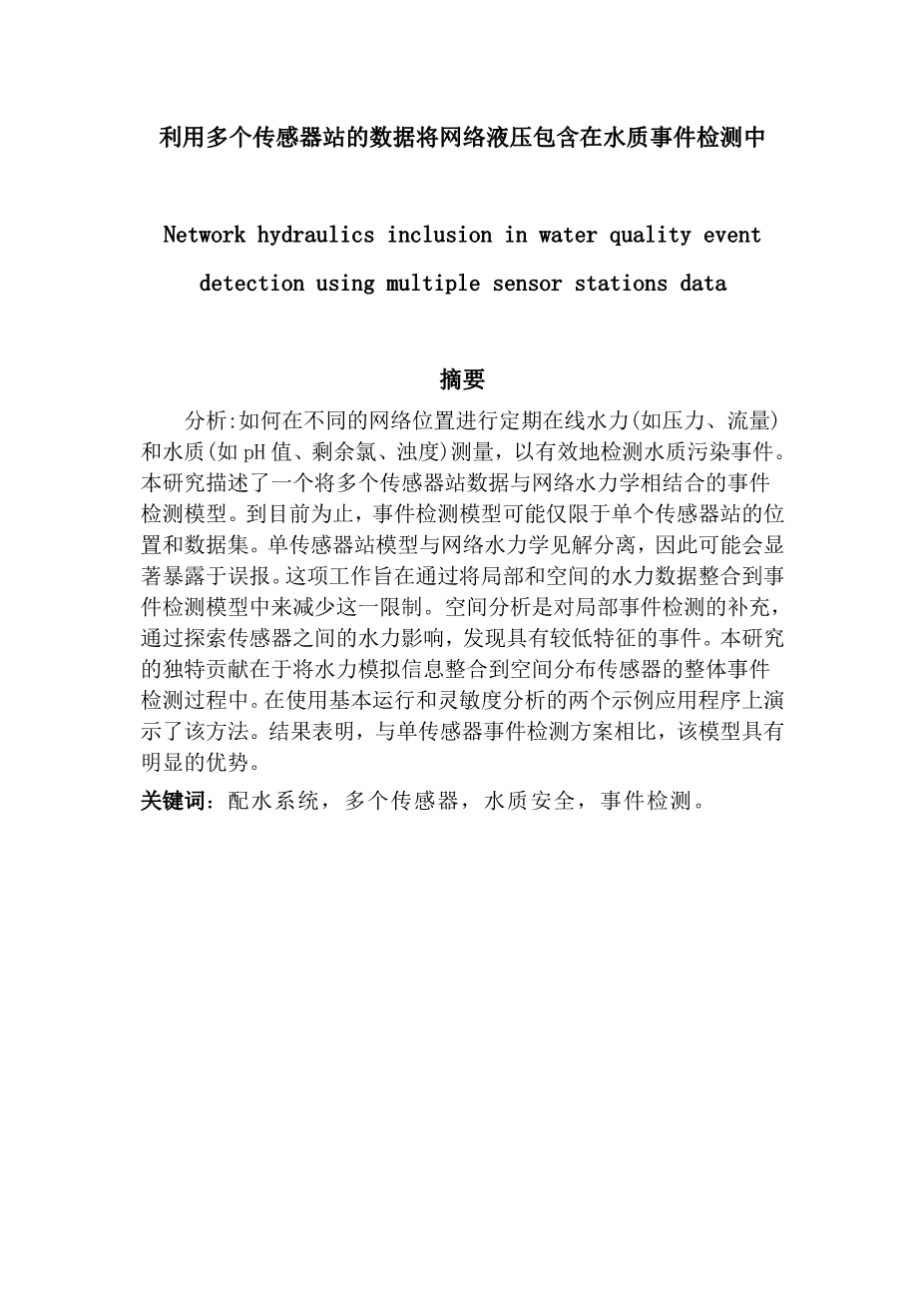 利用多个传感器站的数据将网络液压包含在水质事件检测中外文翻译资料