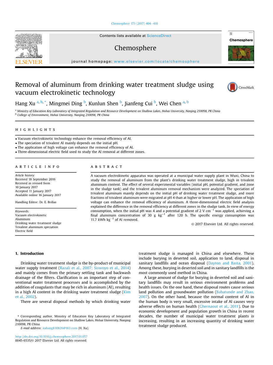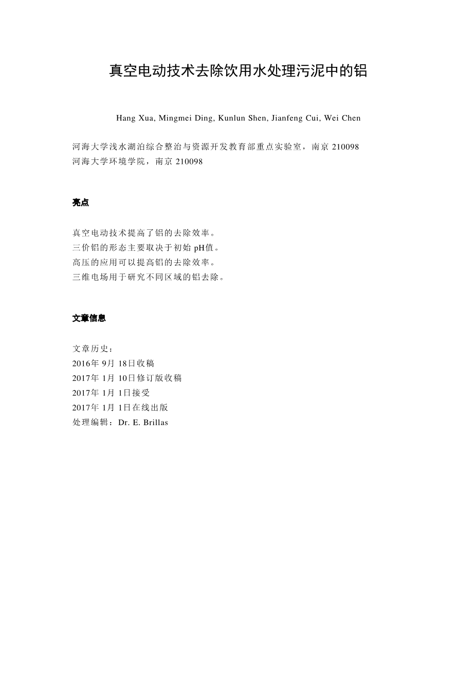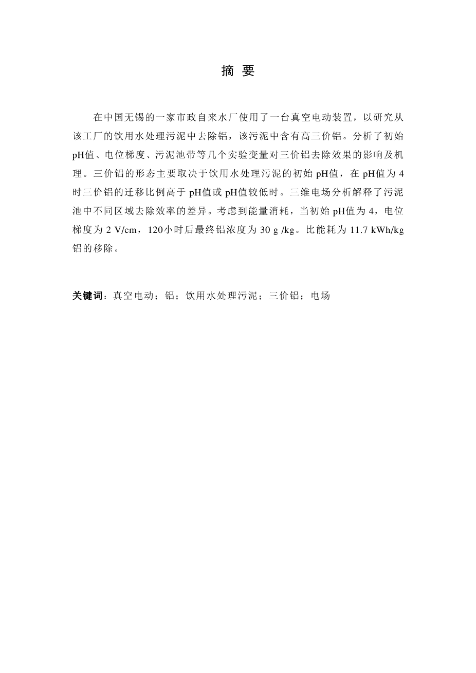 真空电动技术去除饮用水处理污泥中的铝外文翻译资料