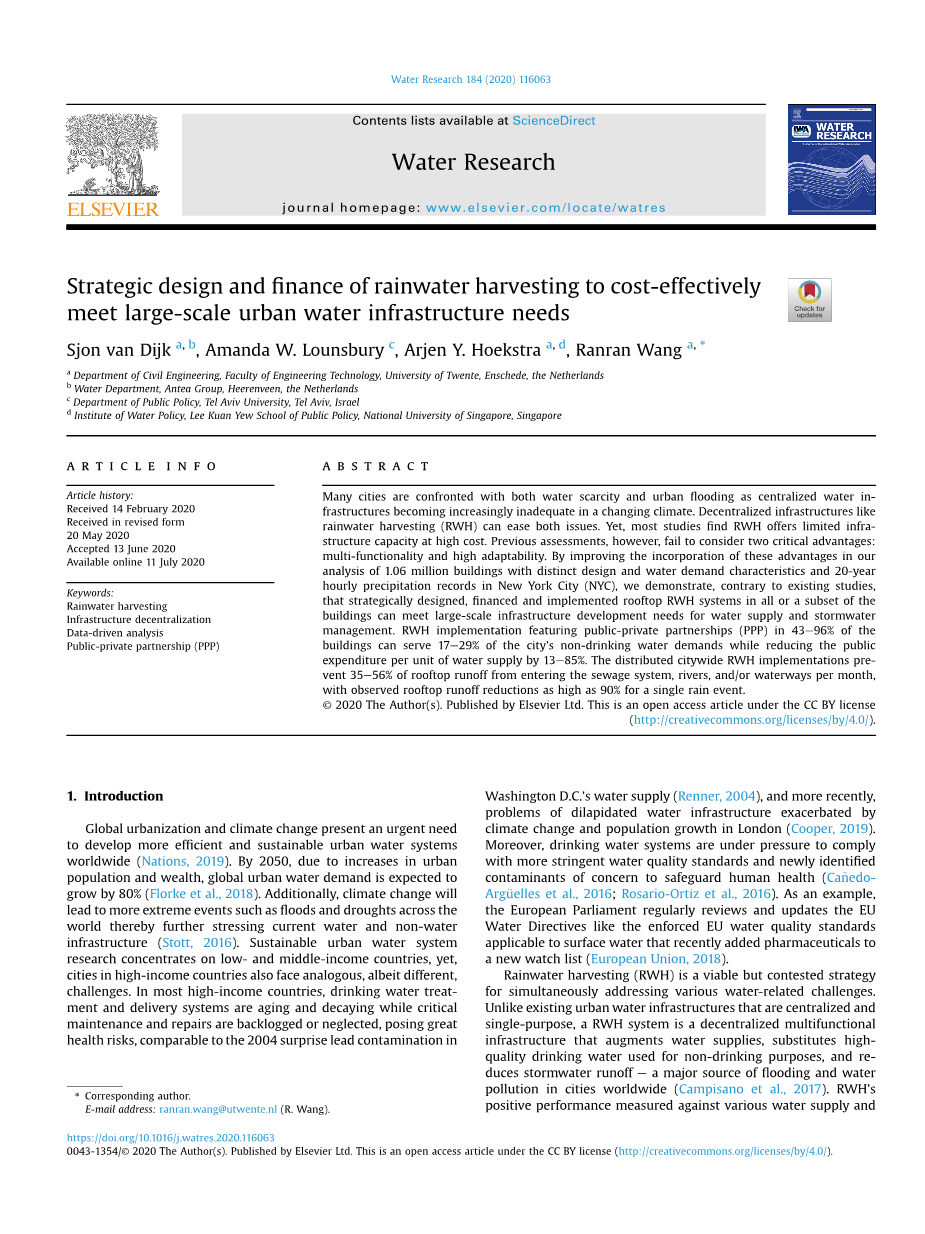 Keywords Rainwater harvesting; Infrastructure decentralization; Data-driven analysis; Public-private partnership (PPP)
