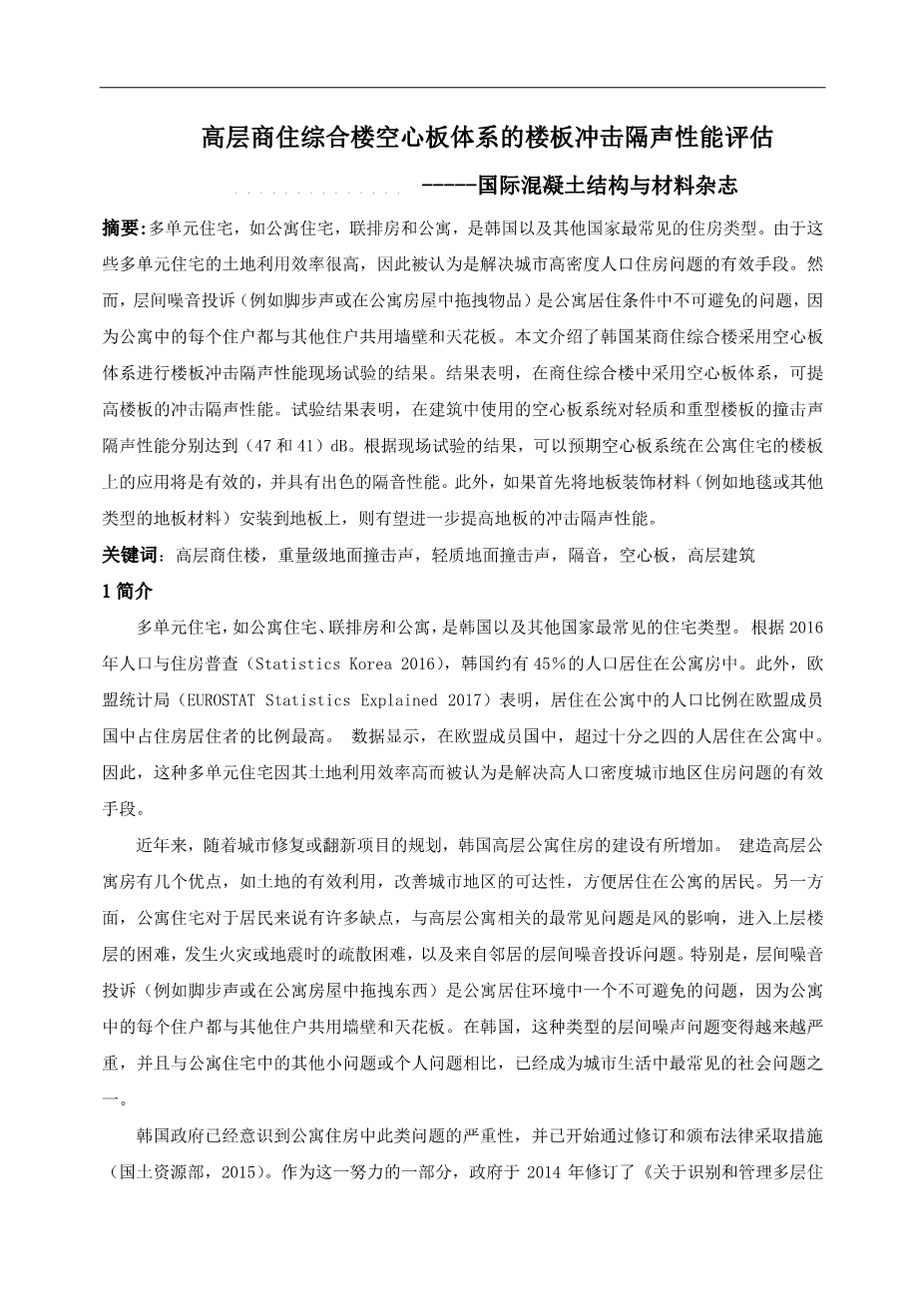 高层商住综合楼空心板体系的楼板冲击隔声性能评估外文翻译资料