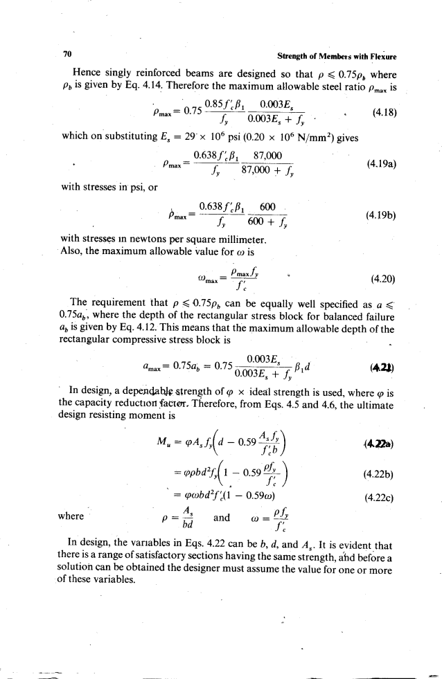在设计中,式4.22中的变量可以是。很明显会有一系列具有相同强度的令人满意的截面,在得到一个解之前,设计者必须假定这些变量中的一个或多个的值。