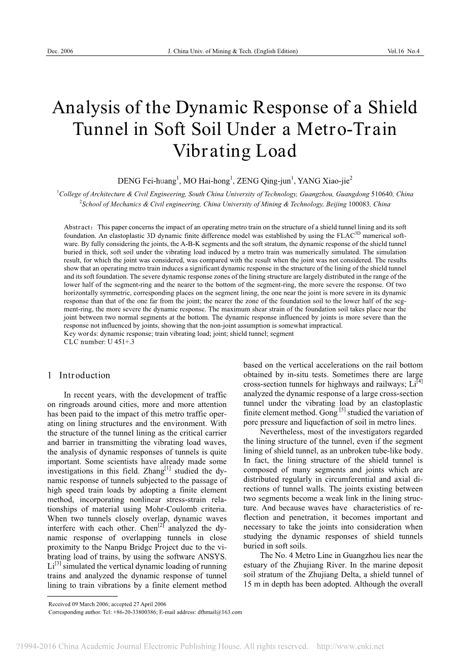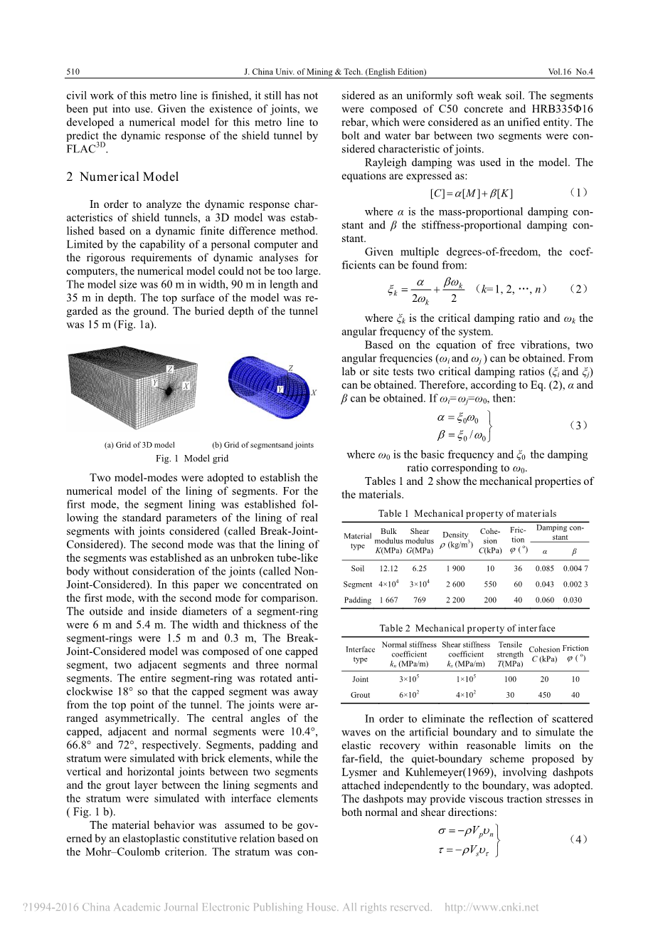 地铁列车在振动荷载作用下盾构隧道的动力响应分析外文翻译资料