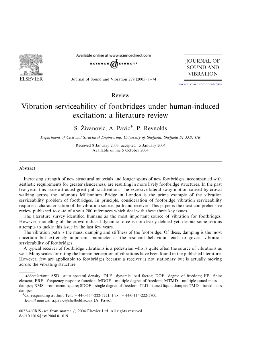 Vibration serviceability of footbridges under human-induced excitation: a literature review |
