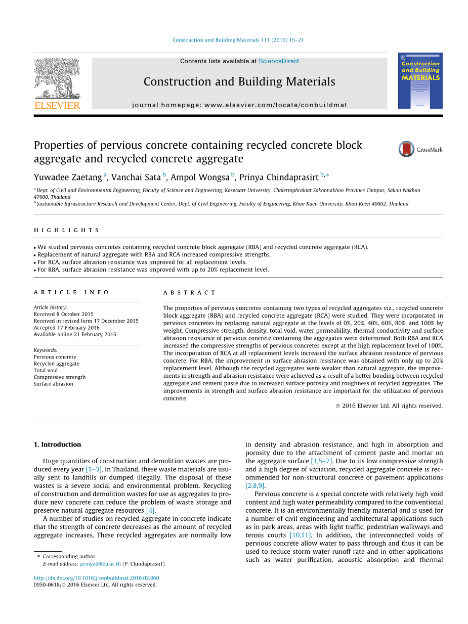 Yuwadee Zaetang a, Vanchai Sata b, Ampol Wongsa b, Prinya Chindaprasirt b