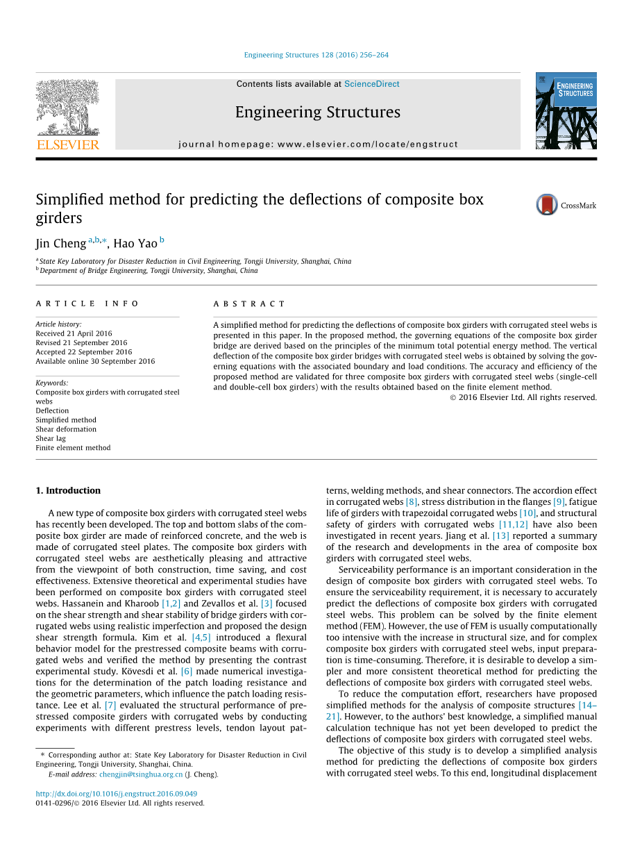 关键词: 波形钢腹板组合箱梁;挠度;简化方法;剪切变形;剪力滞;有限元法