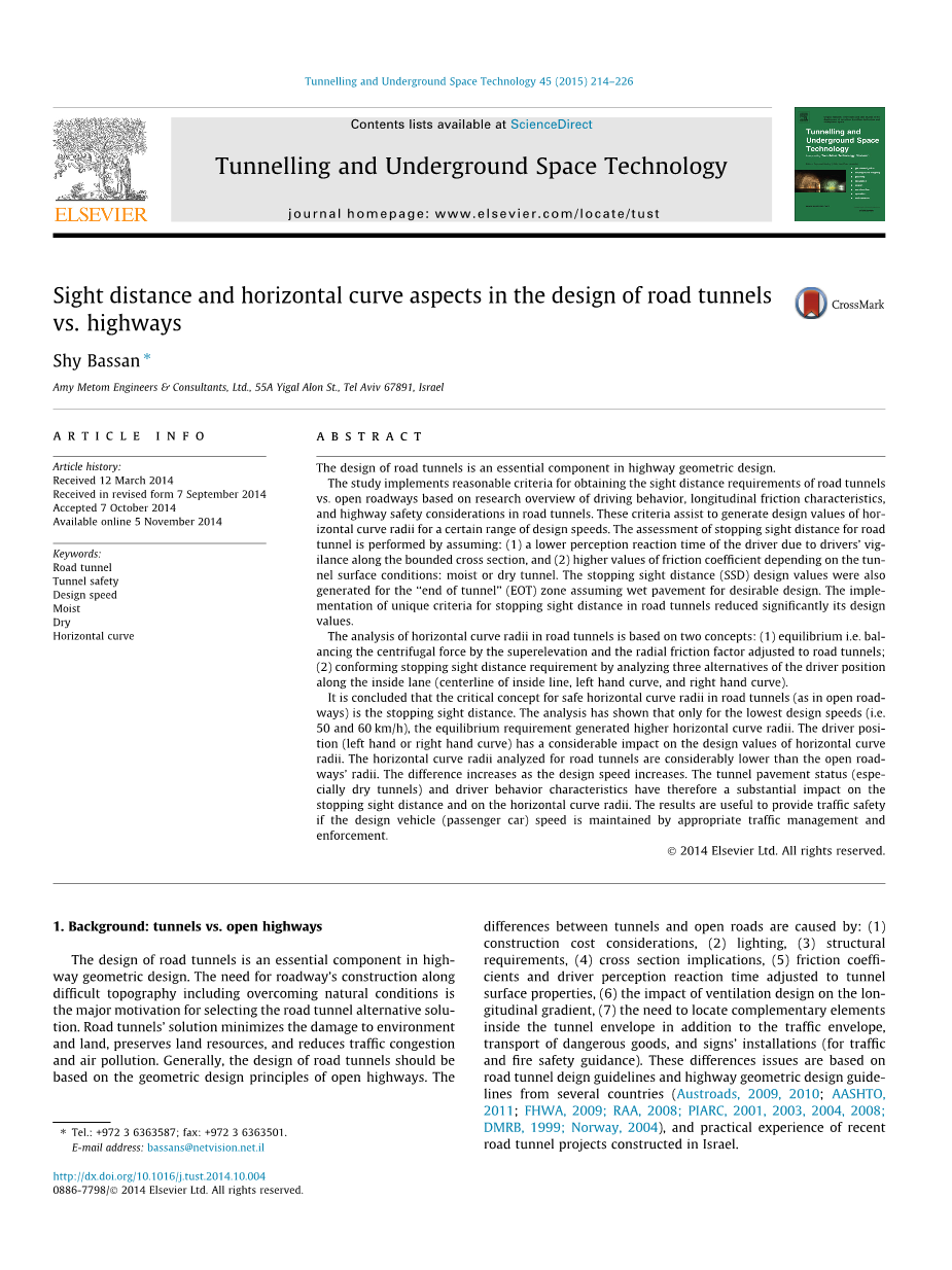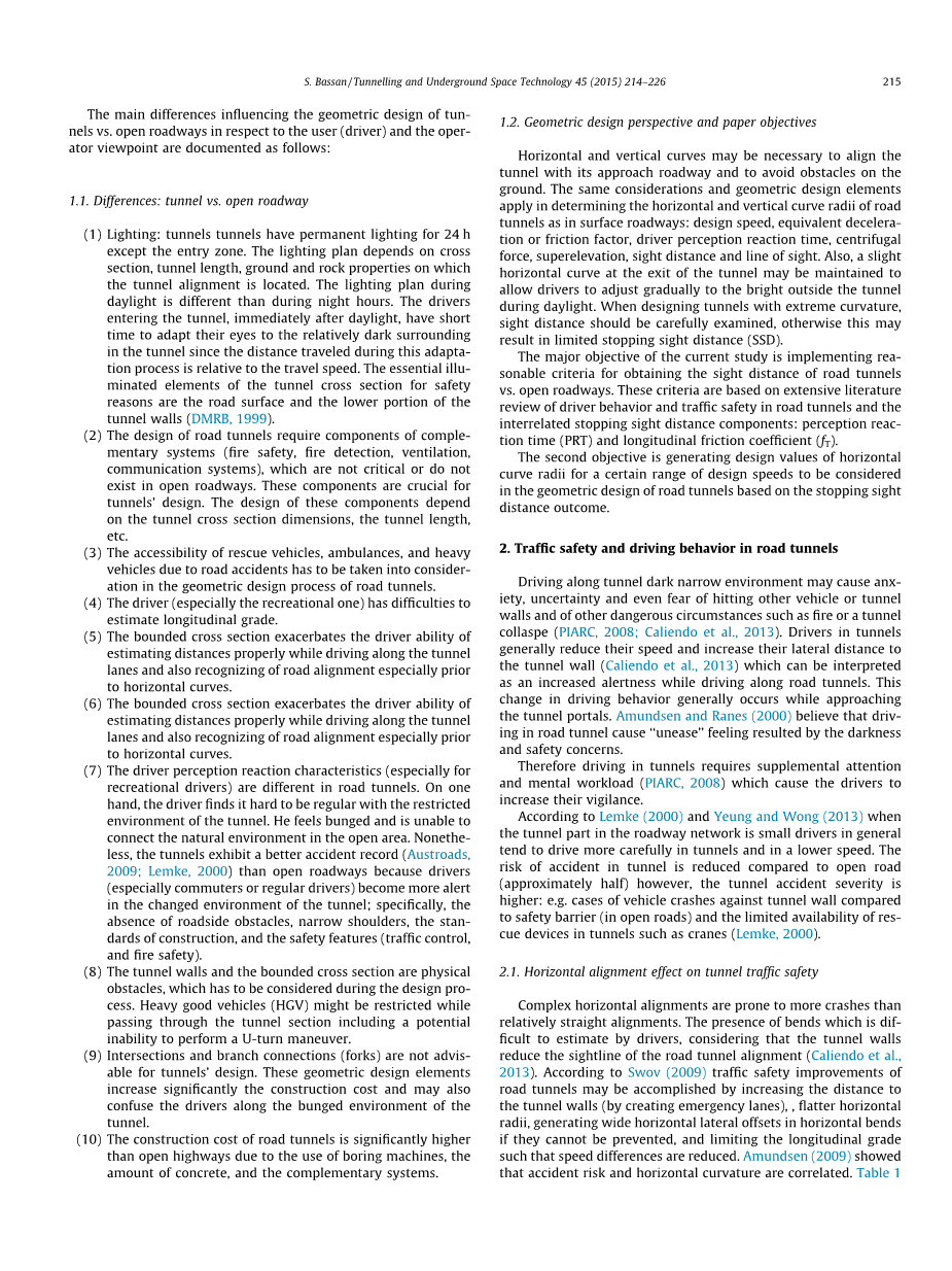 道路隧道与公路设计中的视距与水平曲线外文翻译资料