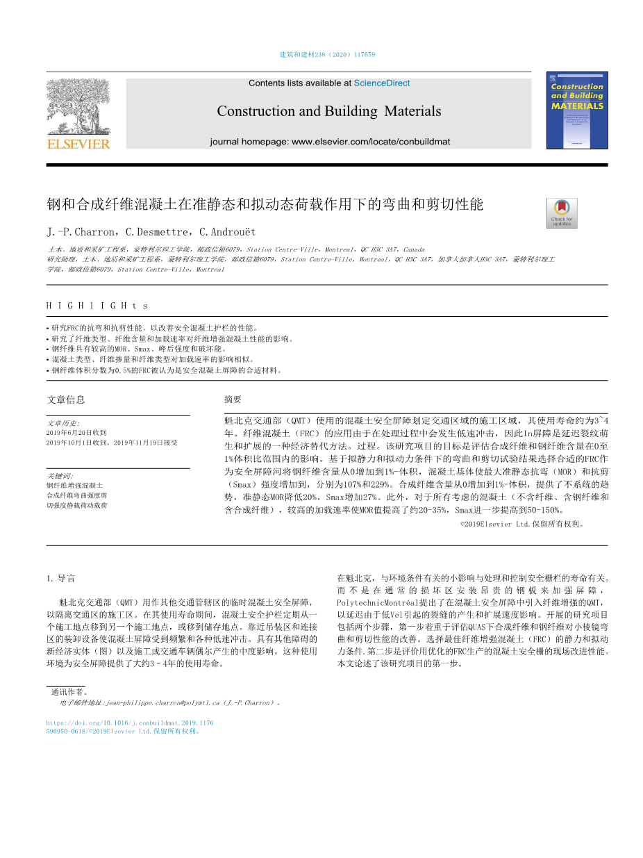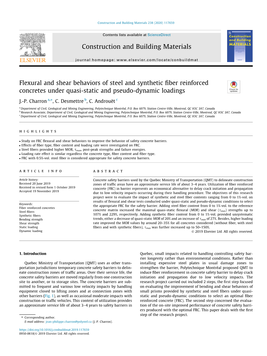 钢和合成纤维混凝土在准静态和拟动态荷载作用下的弯曲和剪切性能外文翻译资料
