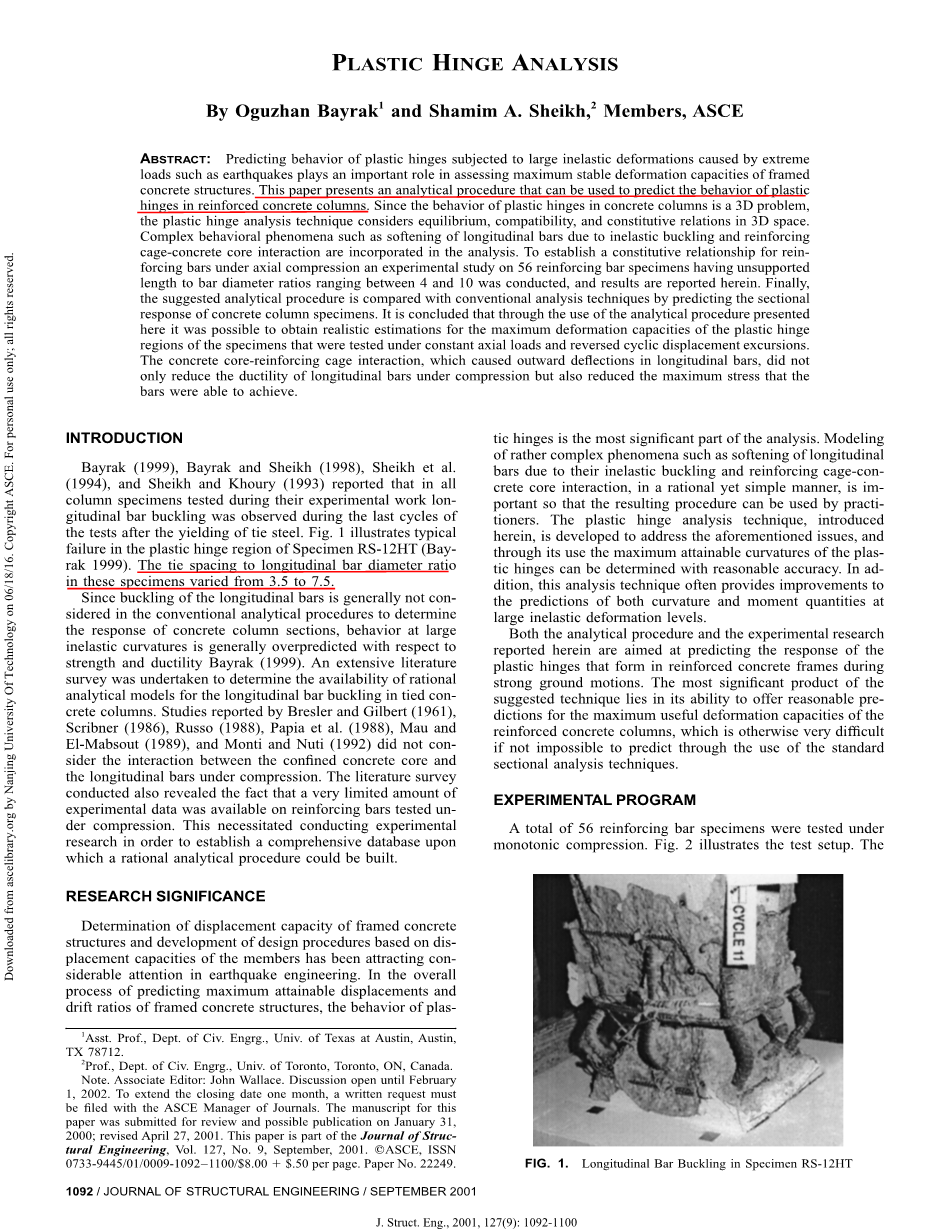 塑性铰分析外文翻译资料