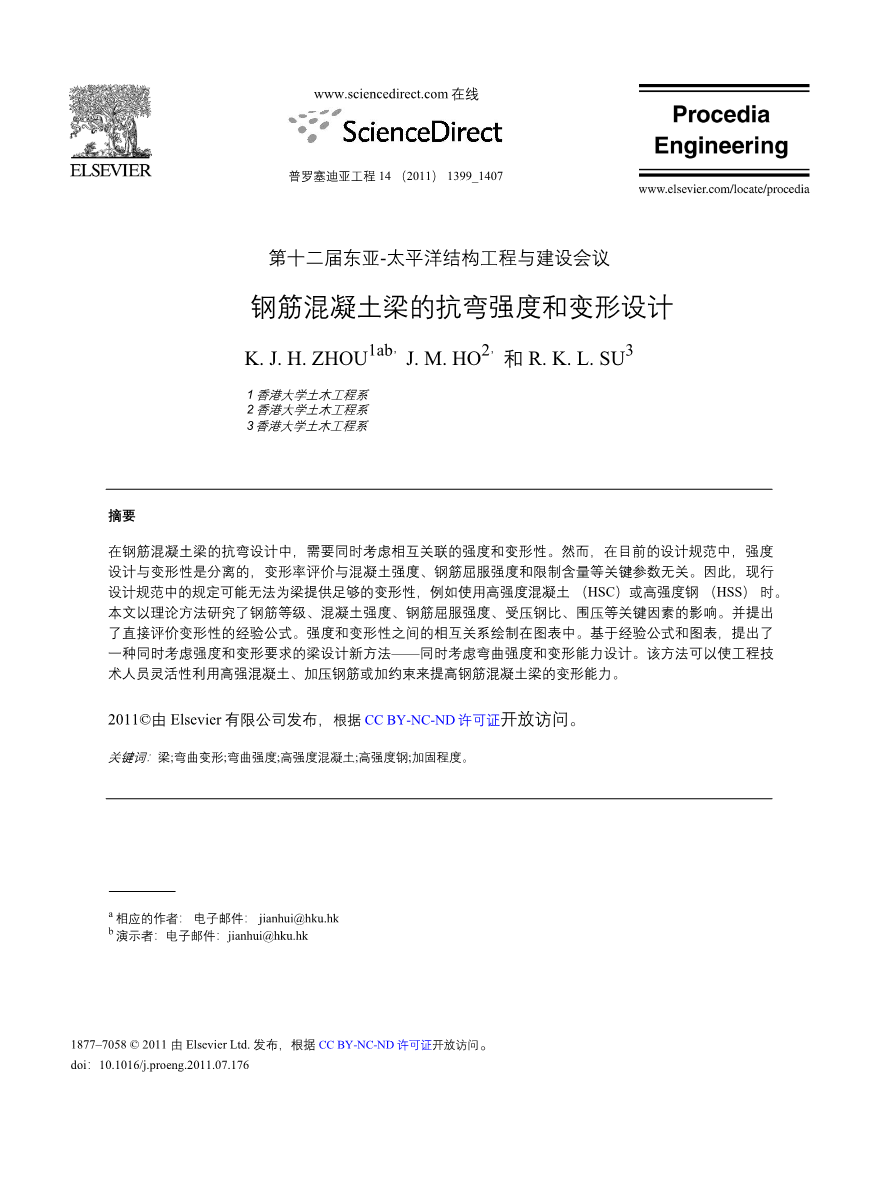 钢筋混凝土梁的抗弯强度和变形设计外文翻译资料