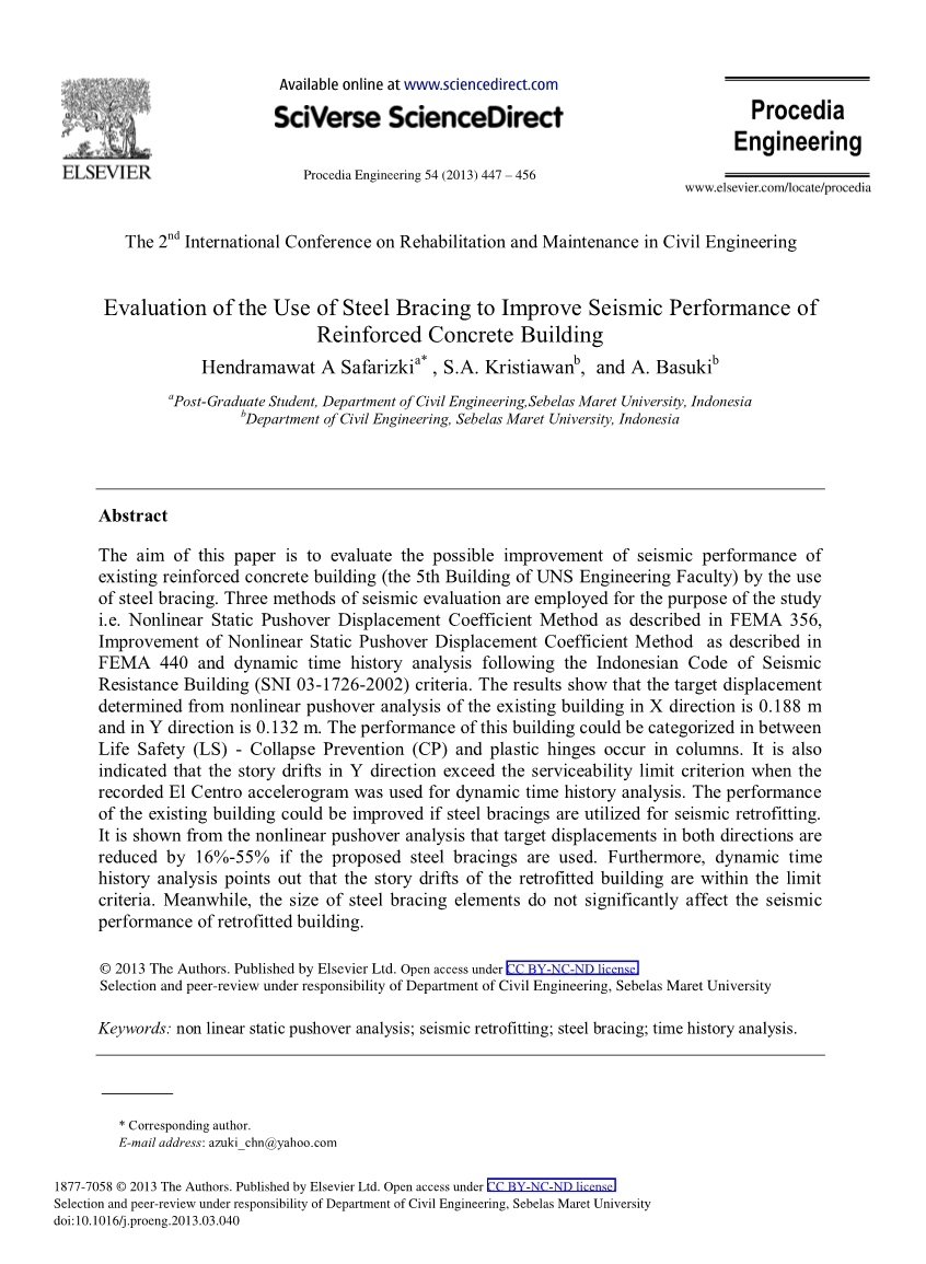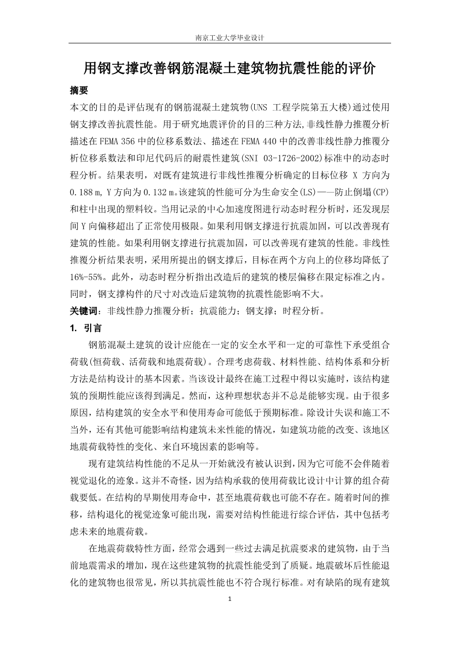 用钢支撑改善钢筋混凝土建筑物抗震性能的评价外文翻译资料