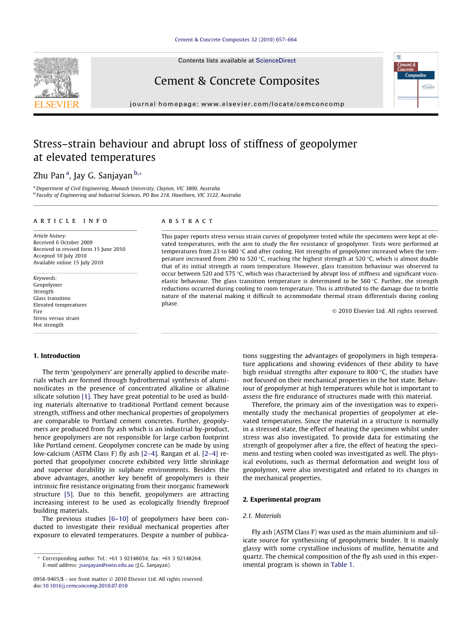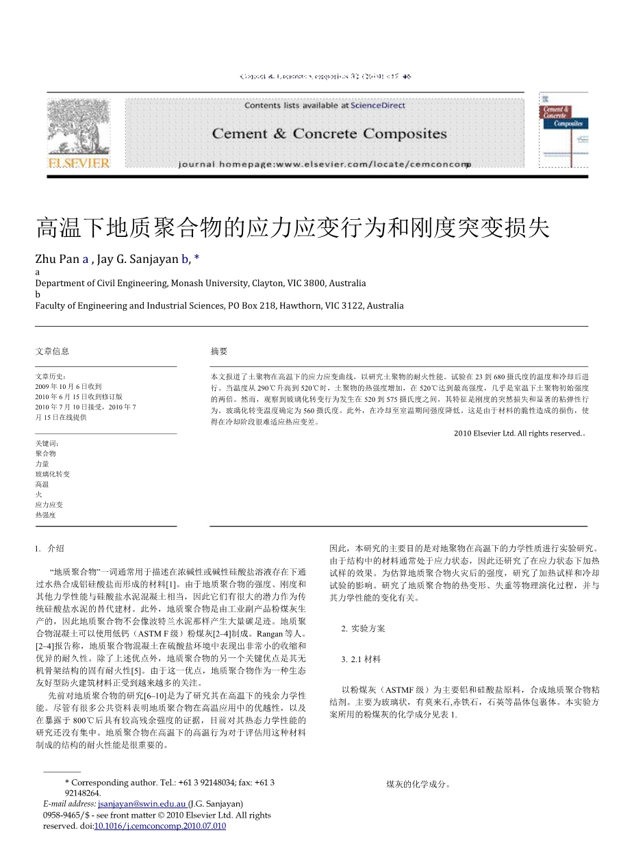 高温下地质聚合物的应力应变行为和刚度突变损失外文翻译资料