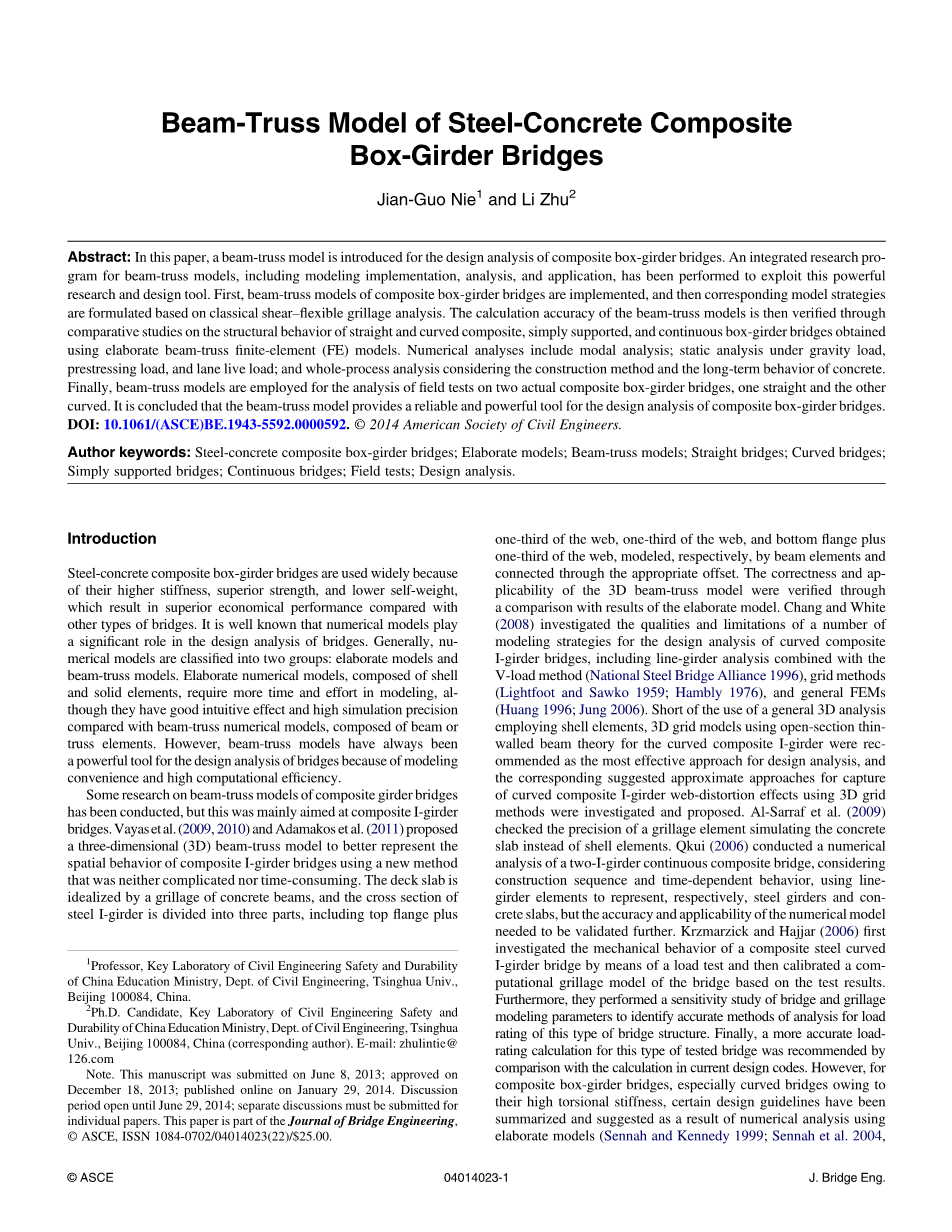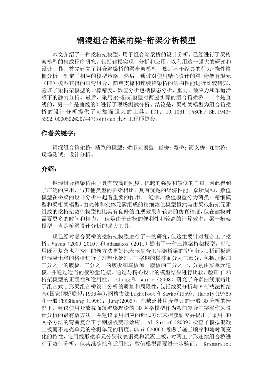 钢混组合箱梁的梁-桁架分析模型外文翻译资料