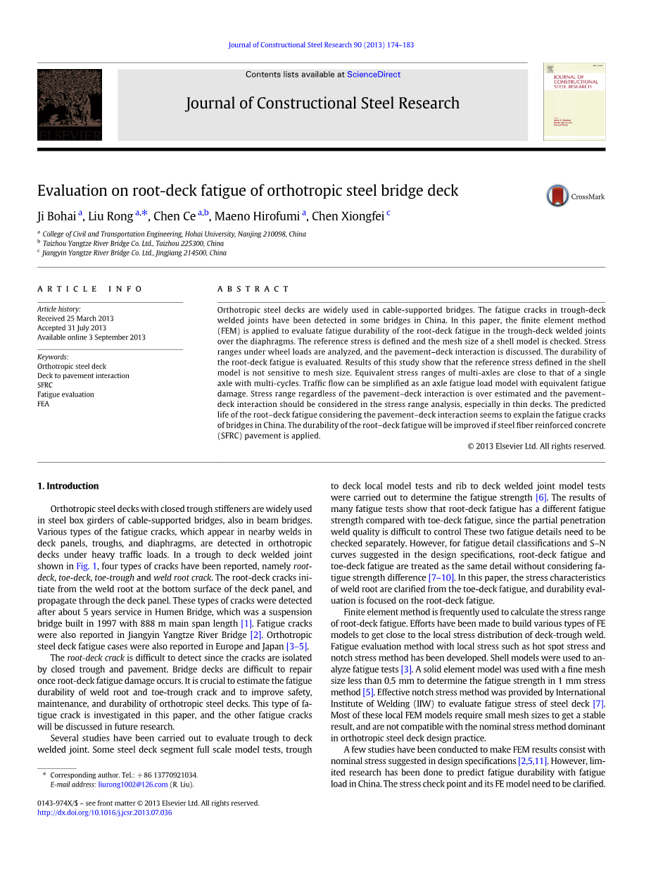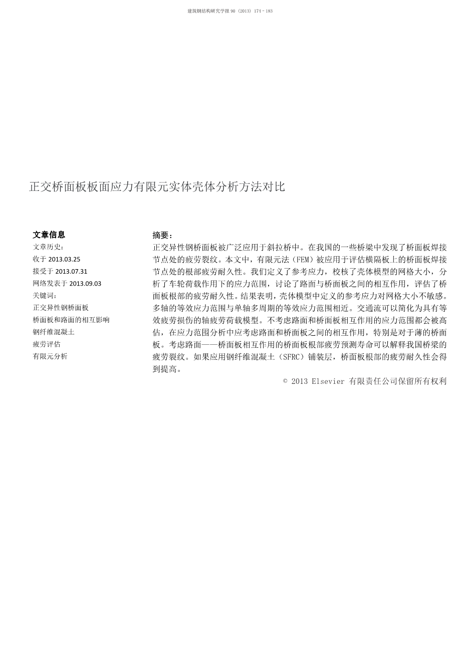 正交桥面板板面应力有限元实体壳体分析方法对比外文翻译资料
