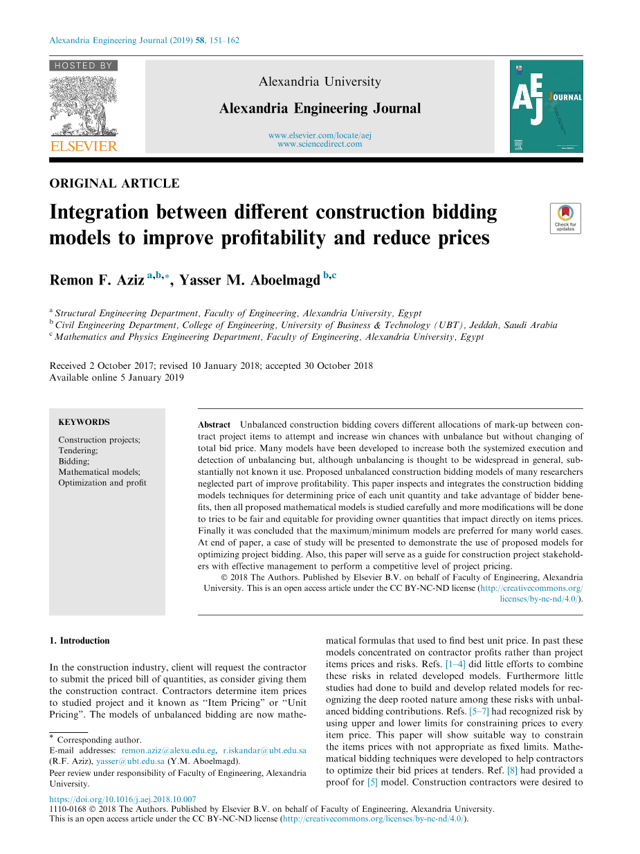 不同施工招标之间的整合 模型以提高盈利能力并降低价格外文翻译资料