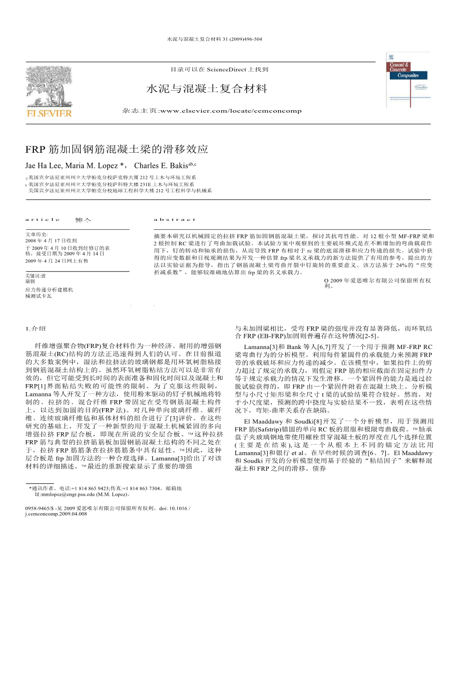 FRP筋加固钢筋混凝土梁的滑移效应外文翻译资料
