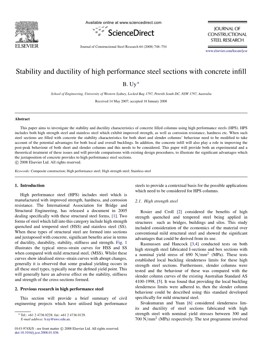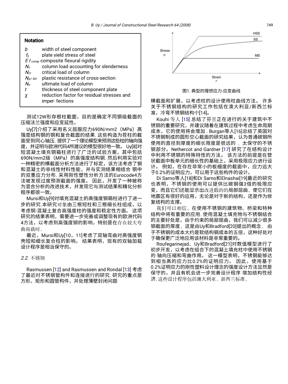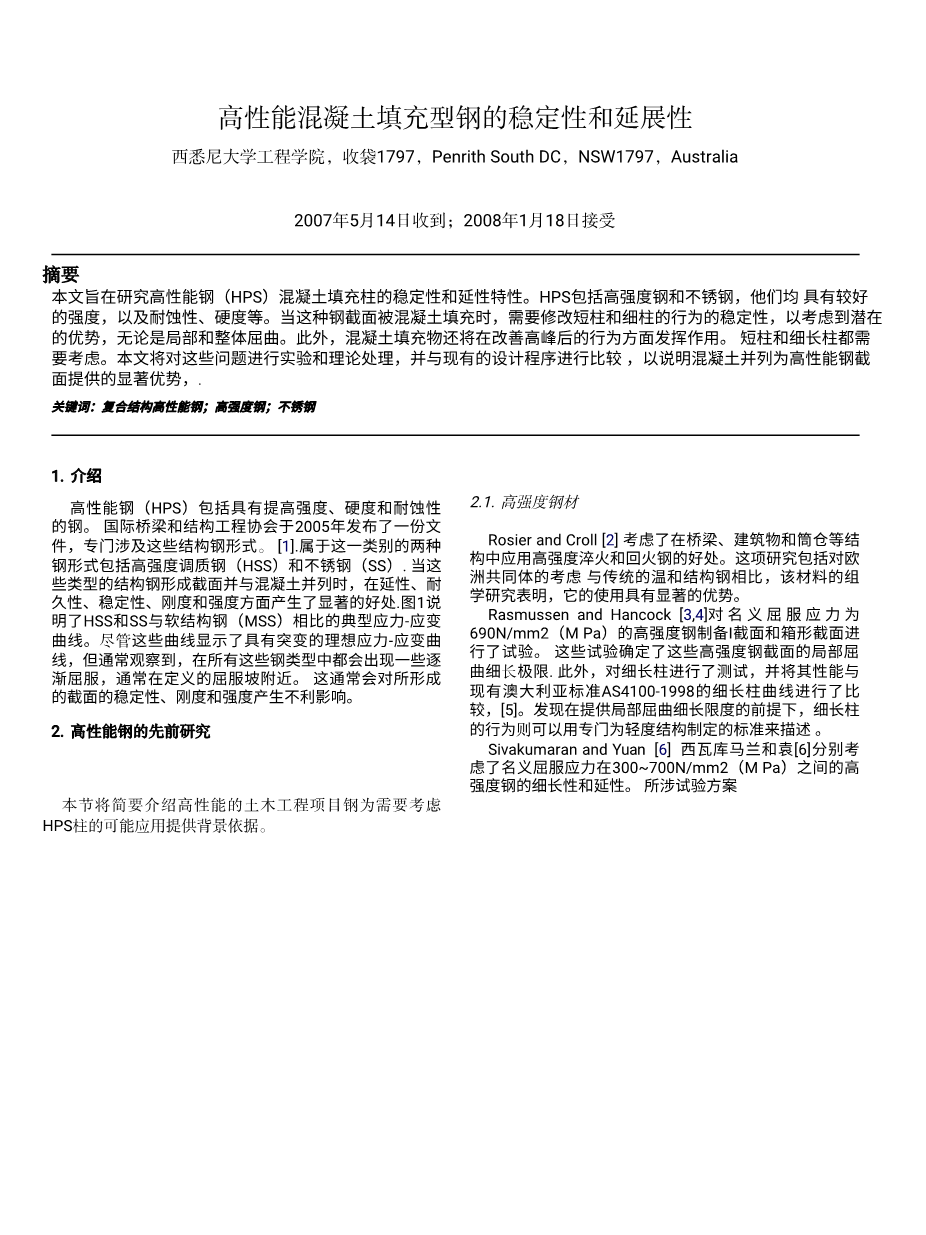 高性能混凝土填充型钢的稳定性和延展性外文翻译资料