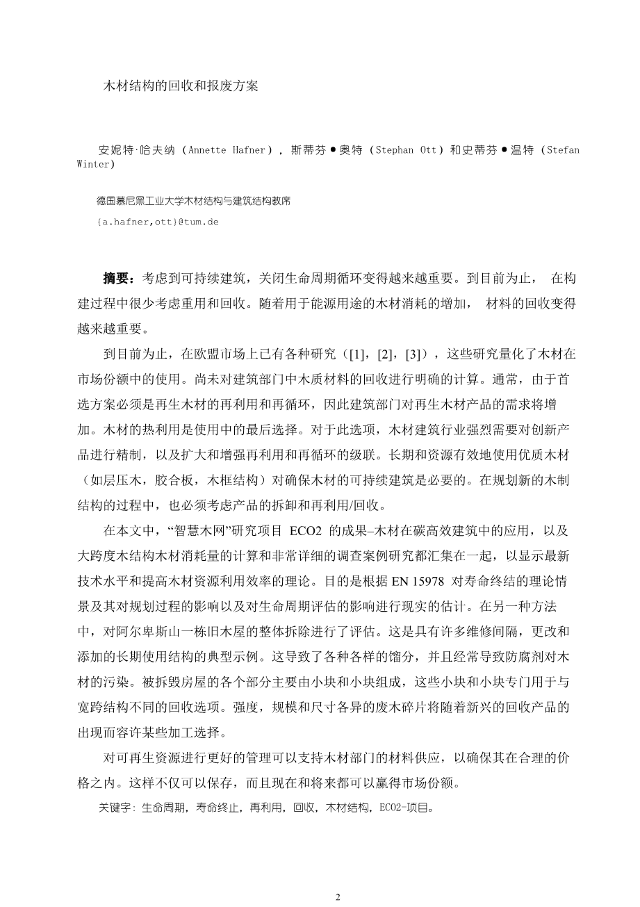 木材结构的回收和报废方案外文翻译资料