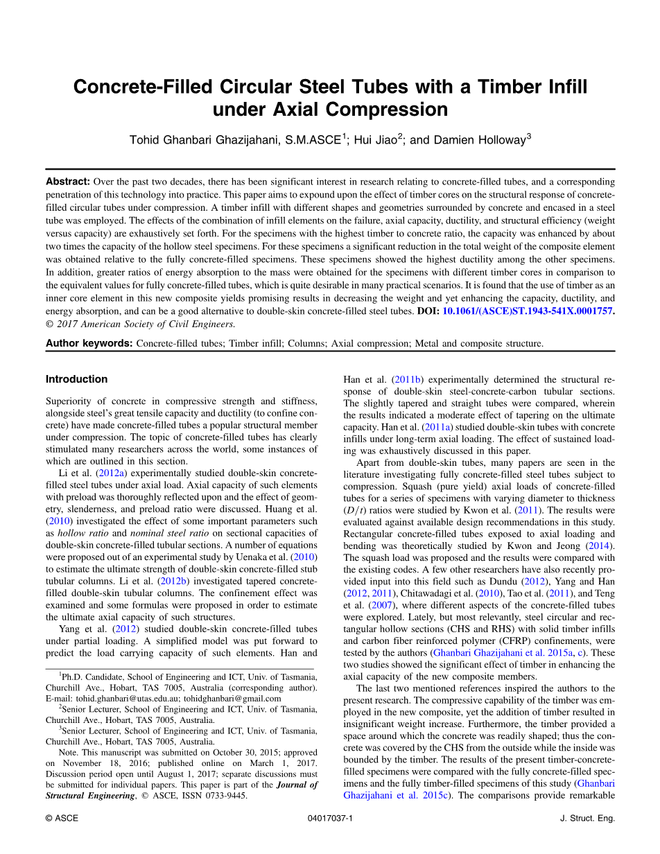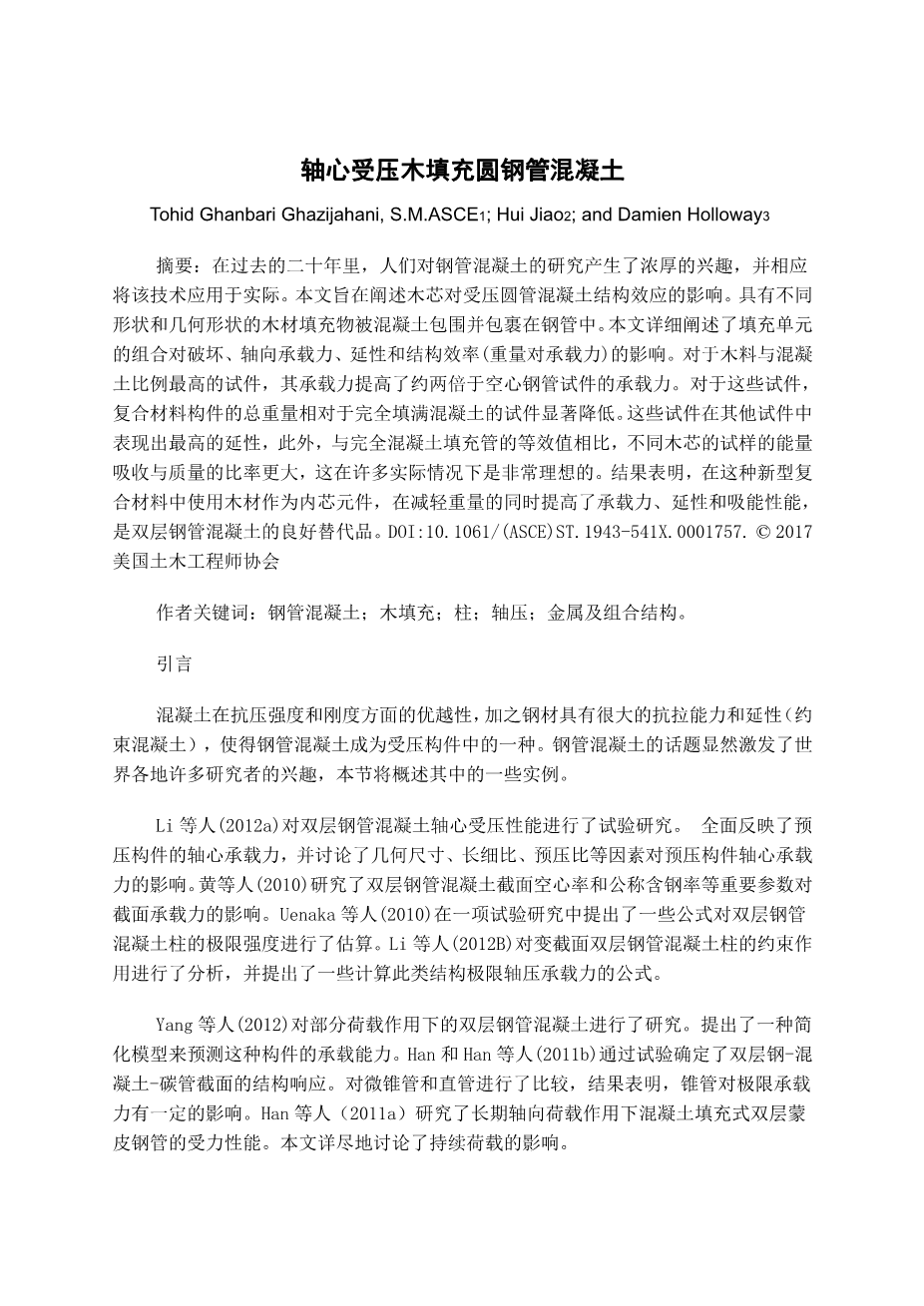 轴心受压木填充圆钢管混凝土外文翻译资料