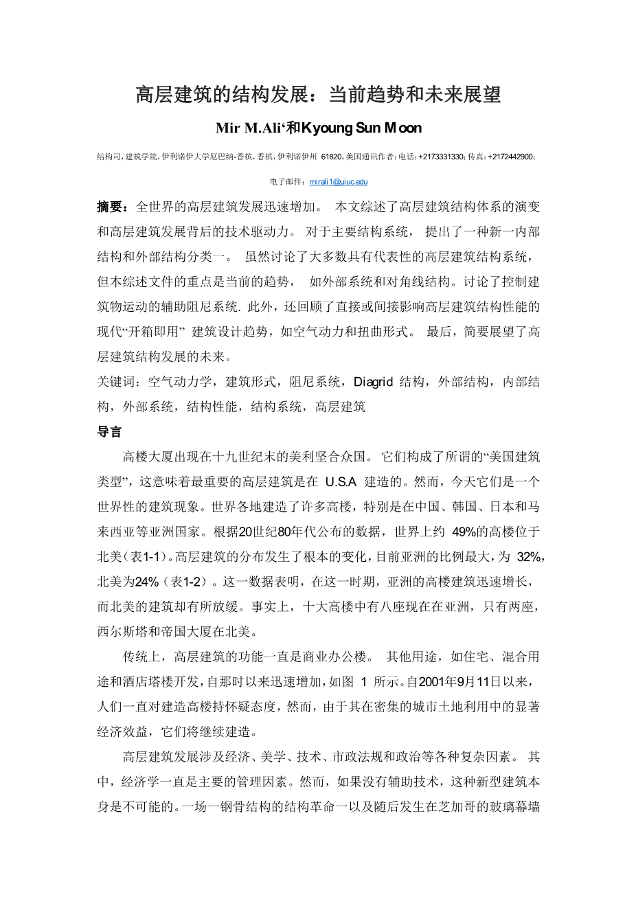 高层建筑的结构发展:当前趋势和未来展望外文翻译资料