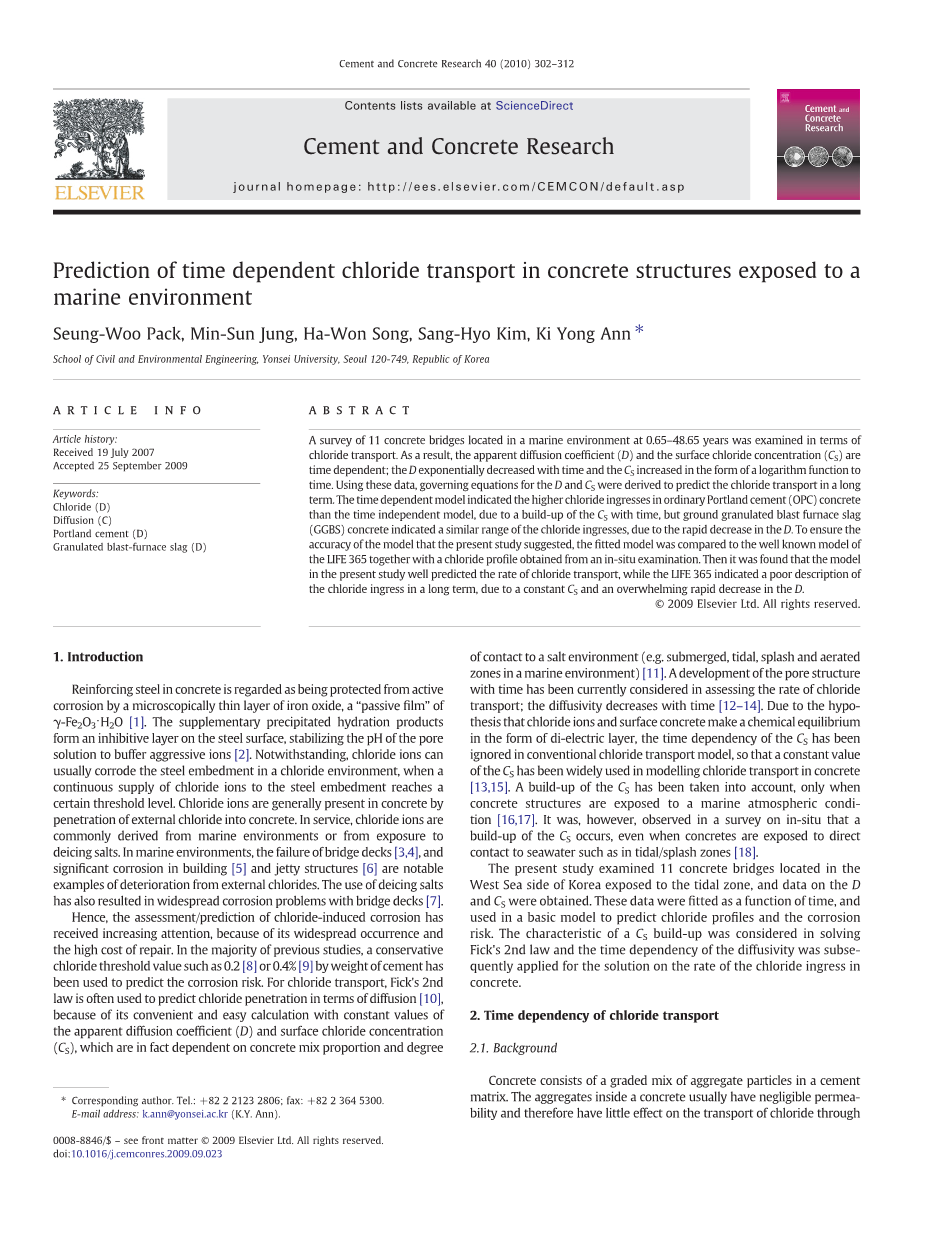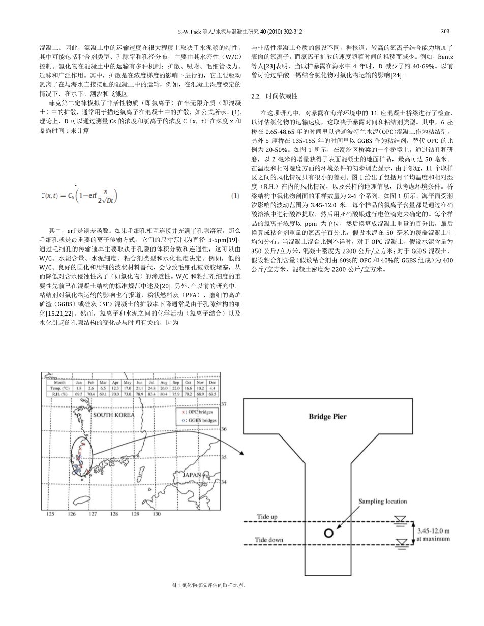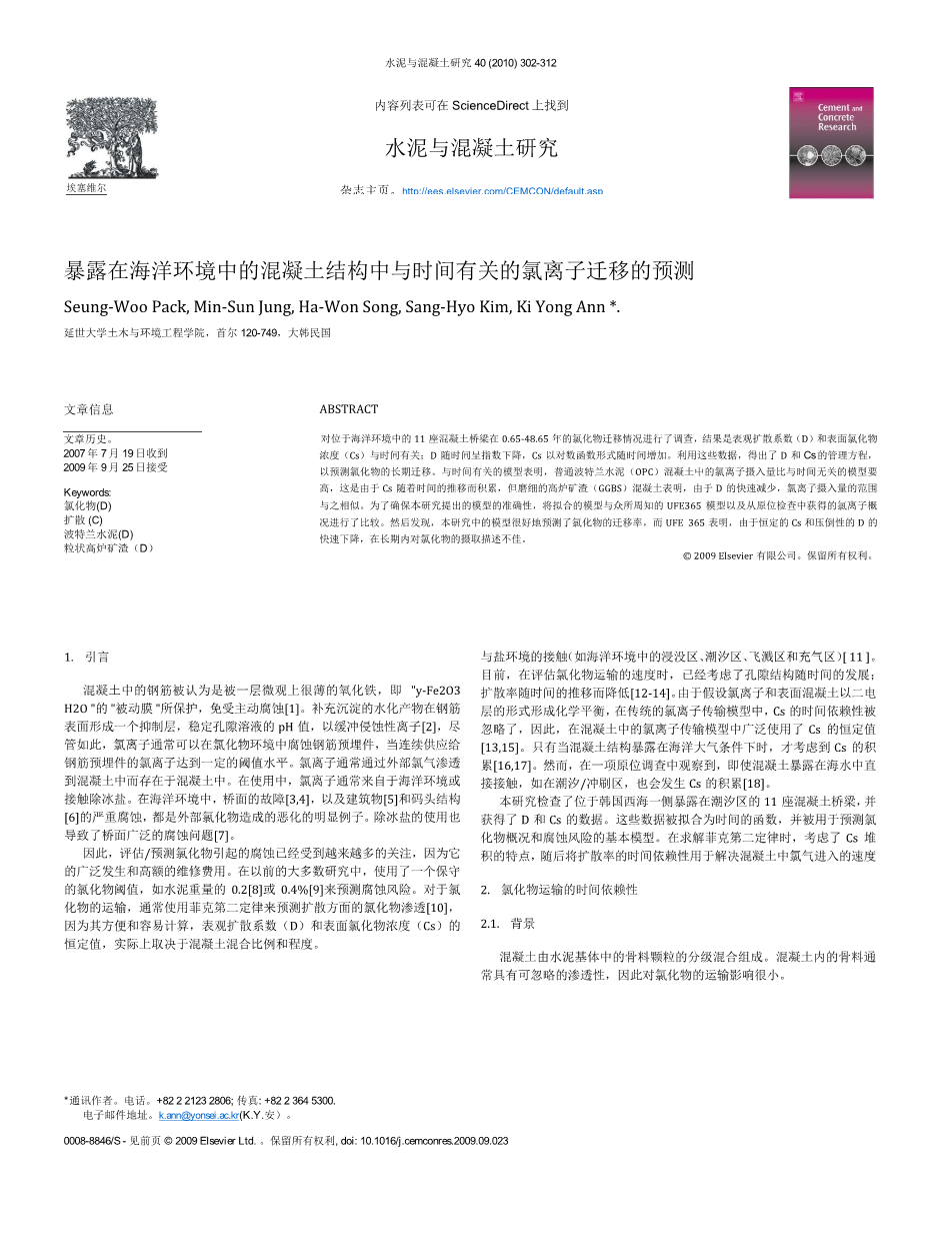 暴露在海洋环境中的混凝土结构中与时间有关的氯离子迁移的预测外文翻译资料