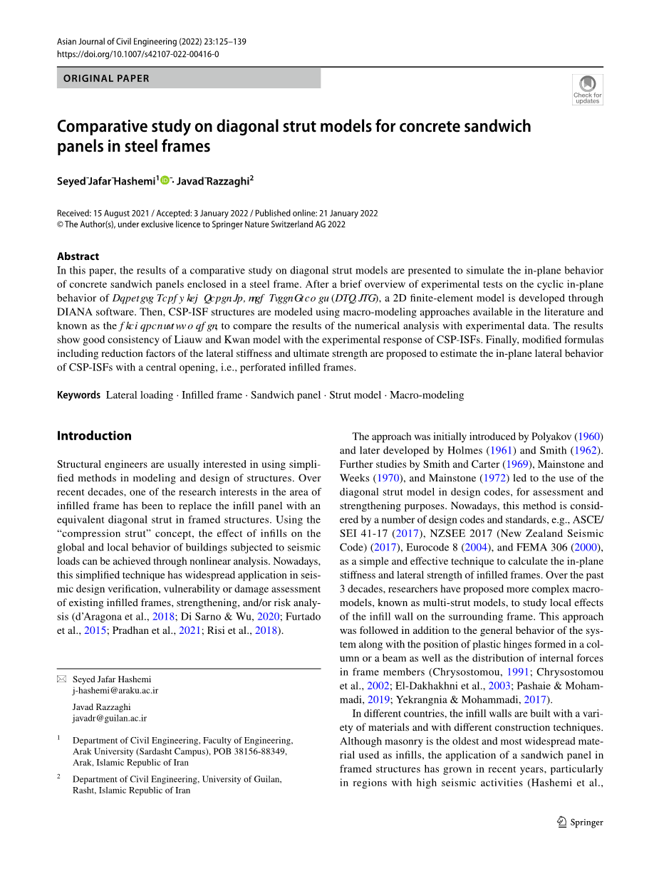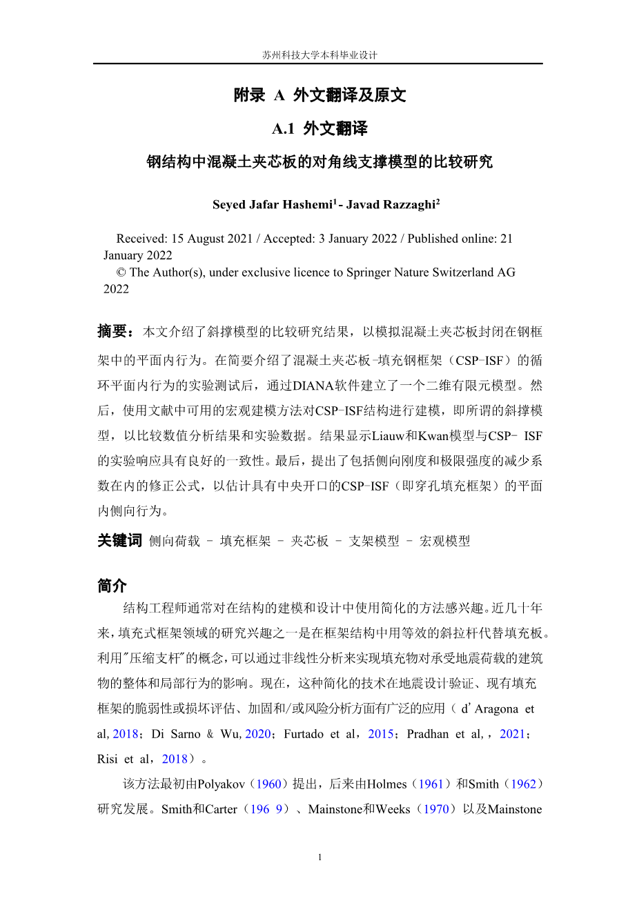 钢结构中混凝土夹芯板的对角线支撑模型的比较研究外文翻译资料