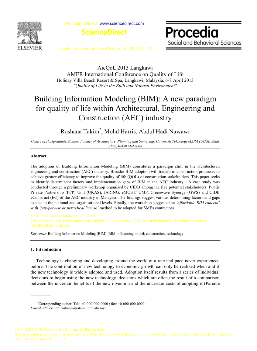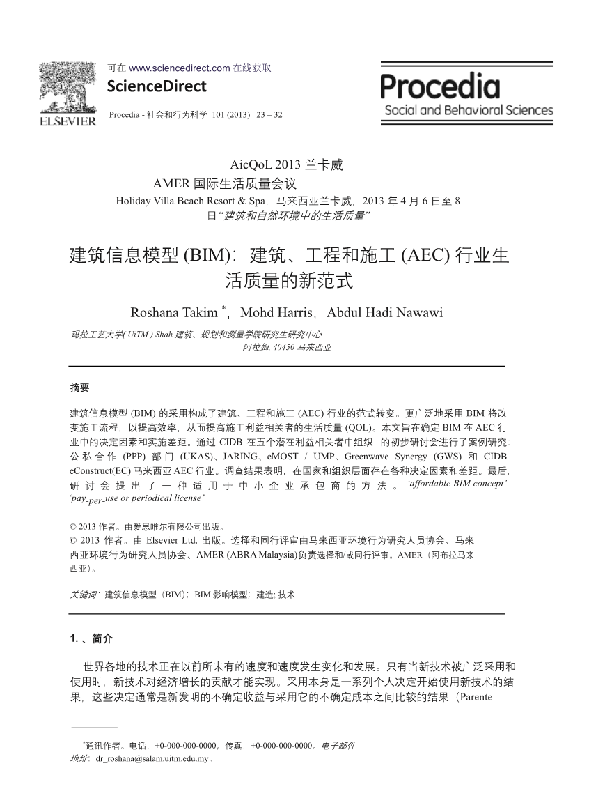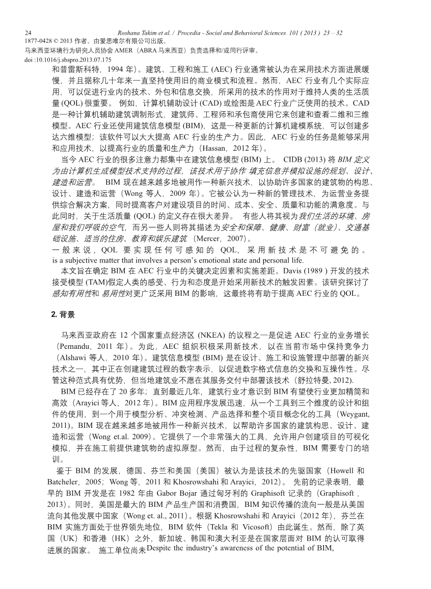 建筑信息模型(BIM):建筑、工程和施工(AEC)行业生活质量的新范式外文翻译资料