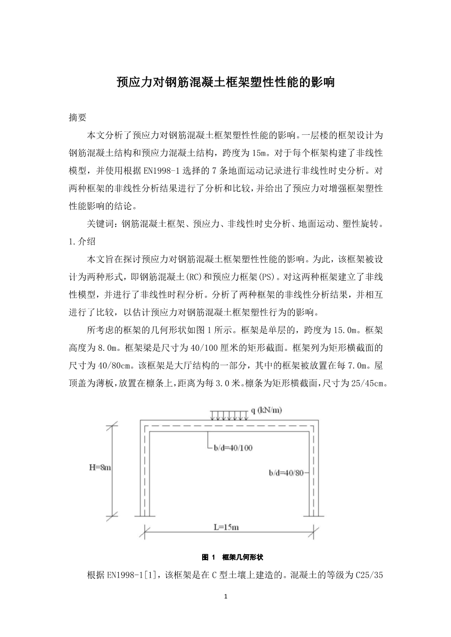 预应力对钢筋混凝土框架塑性性能的影响外文翻译资料