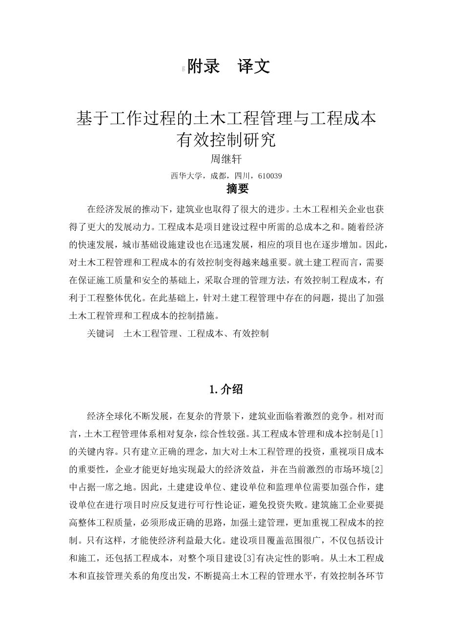 基于工作过程的土木工程管理与工程成本有效控制研究外文翻译资料