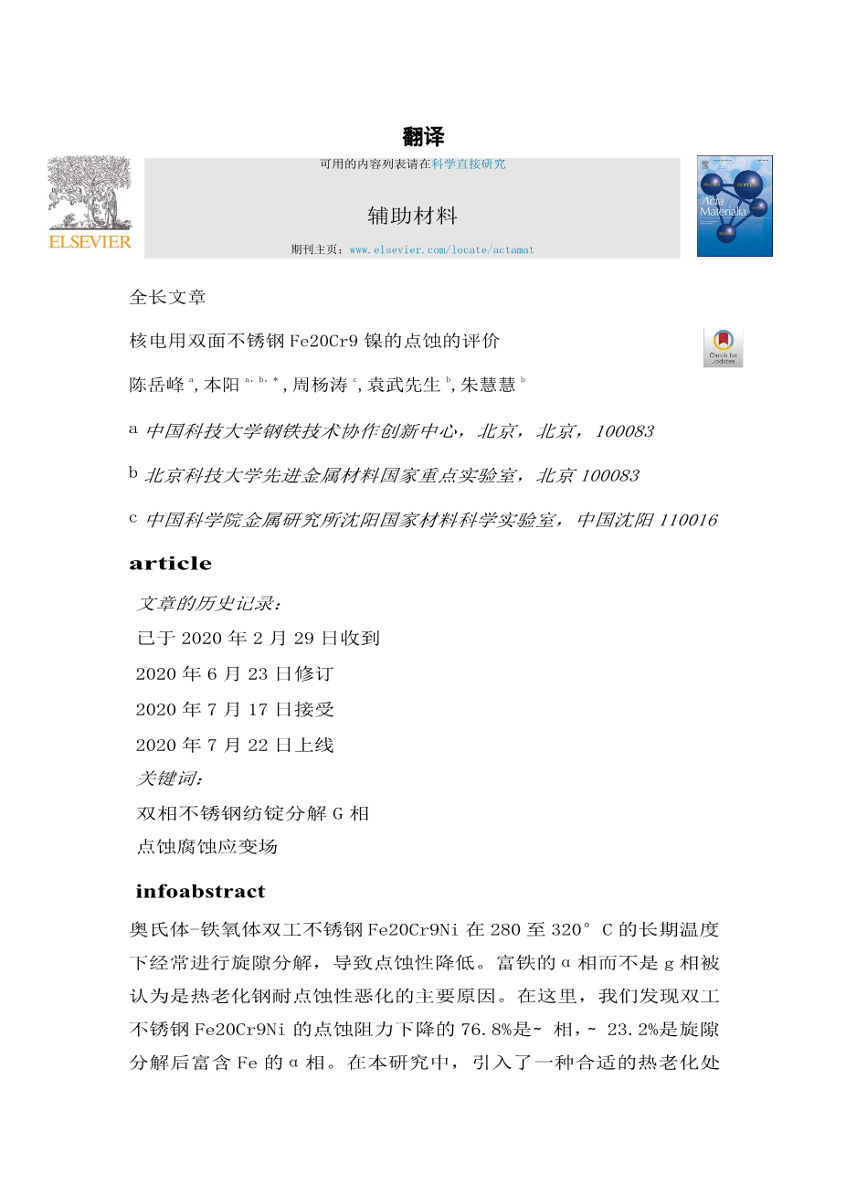核电用双面不锈钢Fe20Cr9镍的点蚀的评价外文翻译资料