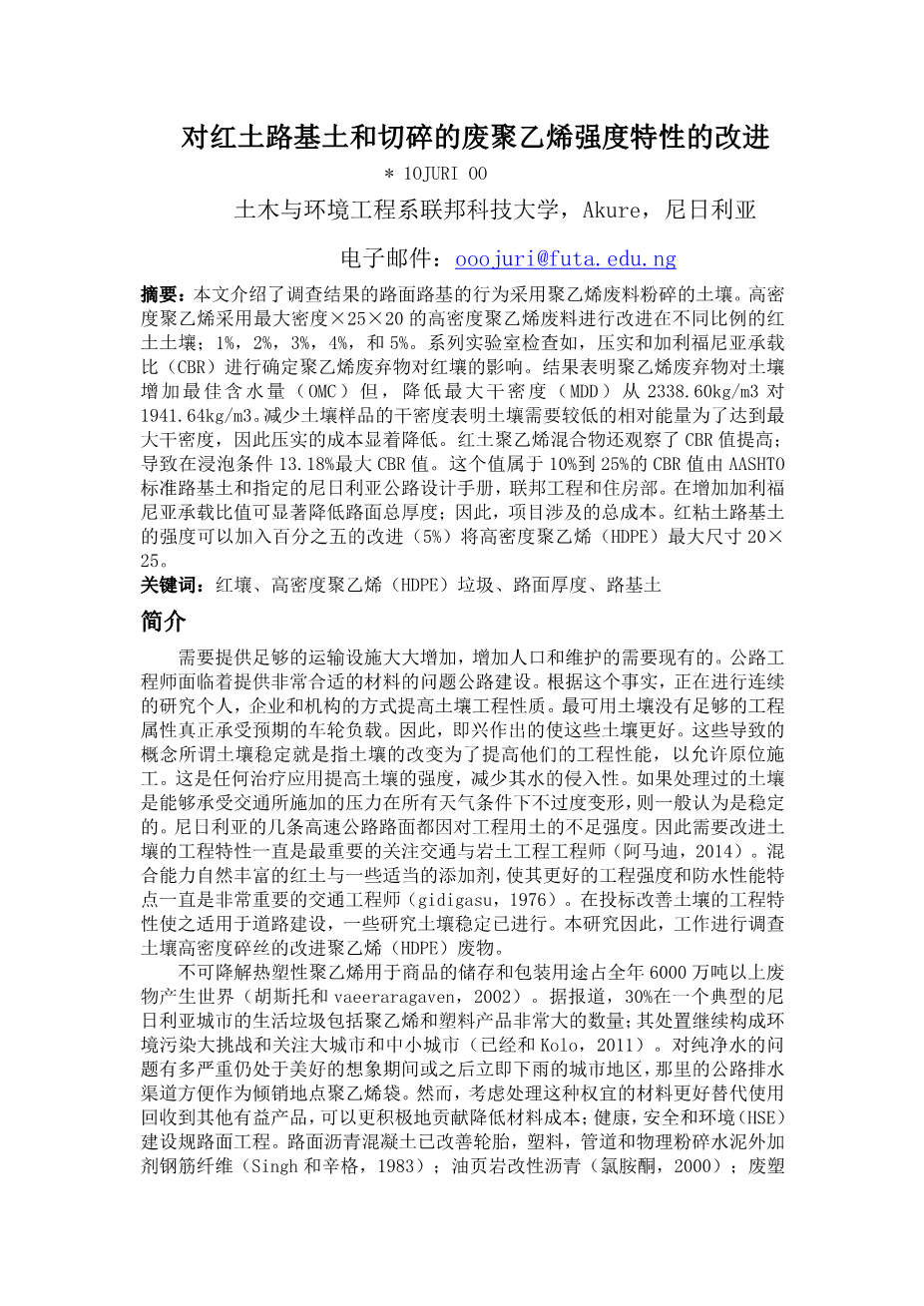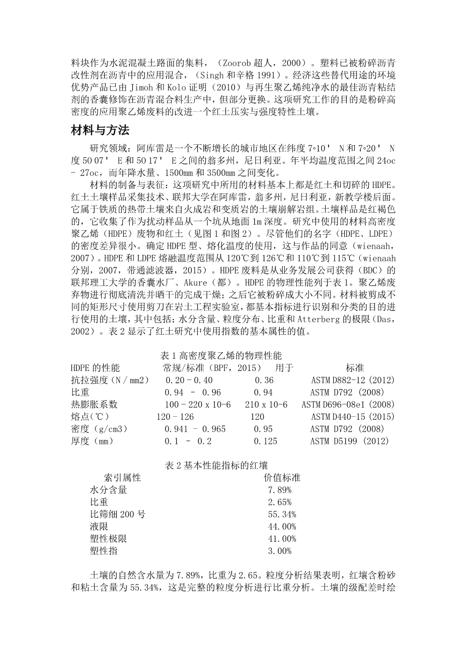 对红土路基土和切碎的废聚乙烯强度特性的改进外文翻译资料