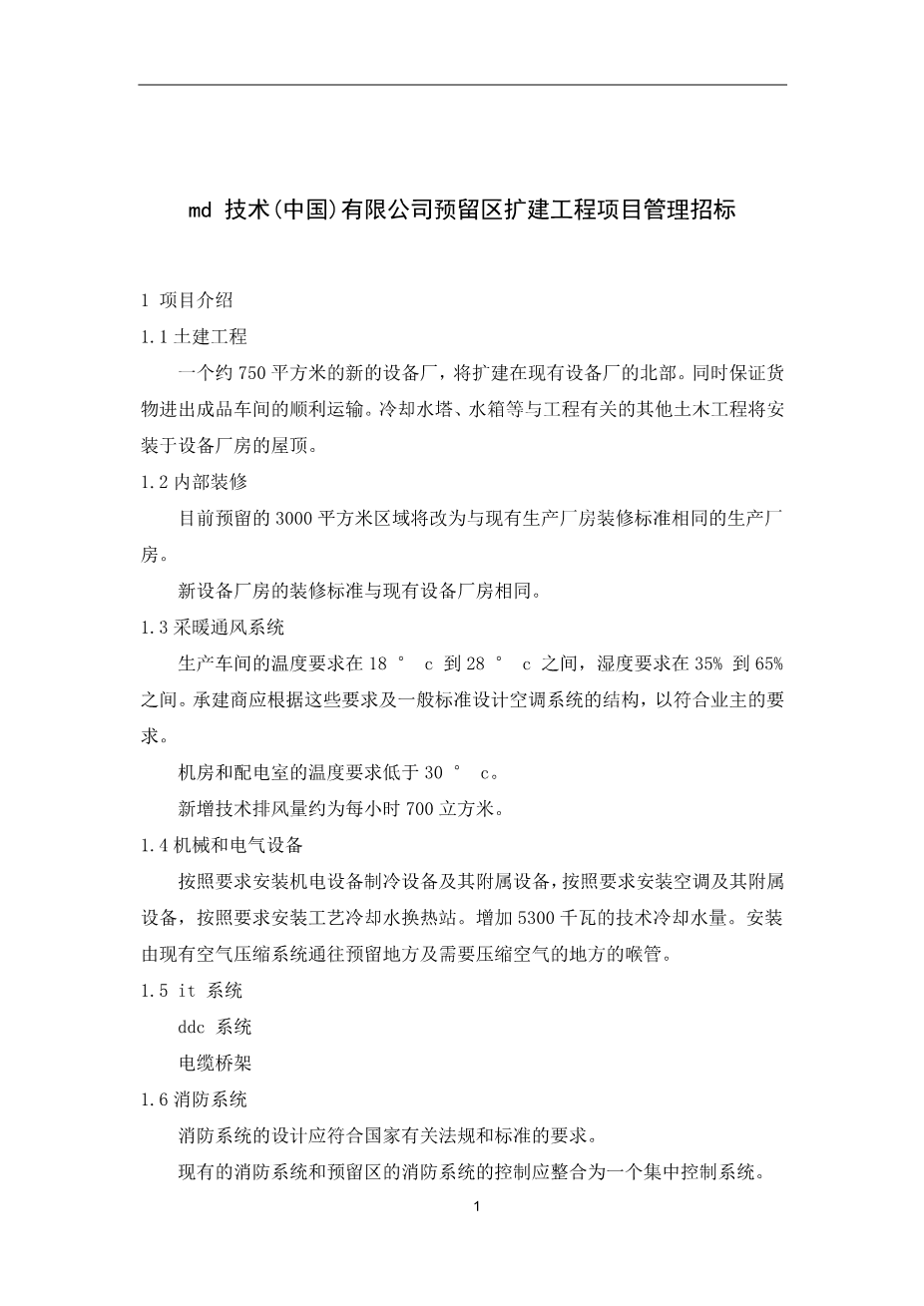 md技术(中国)有限公司预留区扩建工程项目管理招标外文翻译资料